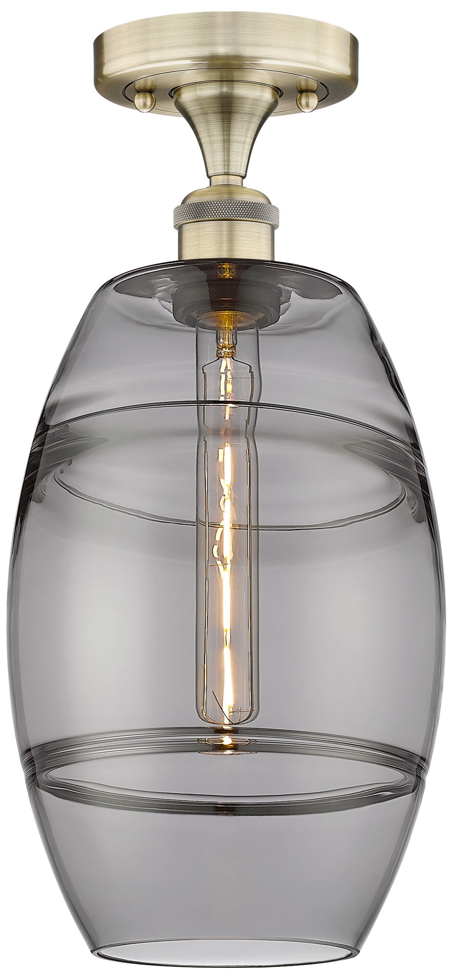 Edison Vaz 8" Wide Antique Brass Semi-Flush Mount With Light Smoke Sha