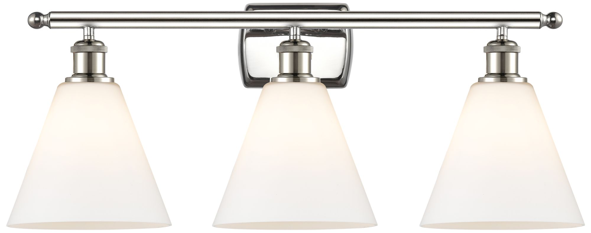 Berkshire 3 Light 28" Bath Light - Polished Nickel - Matte White Shade