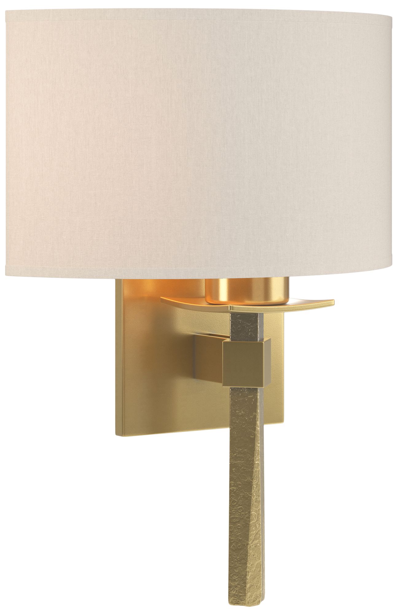 Beacon Hall 13" High Modern Brass Sconce With Flax Shade