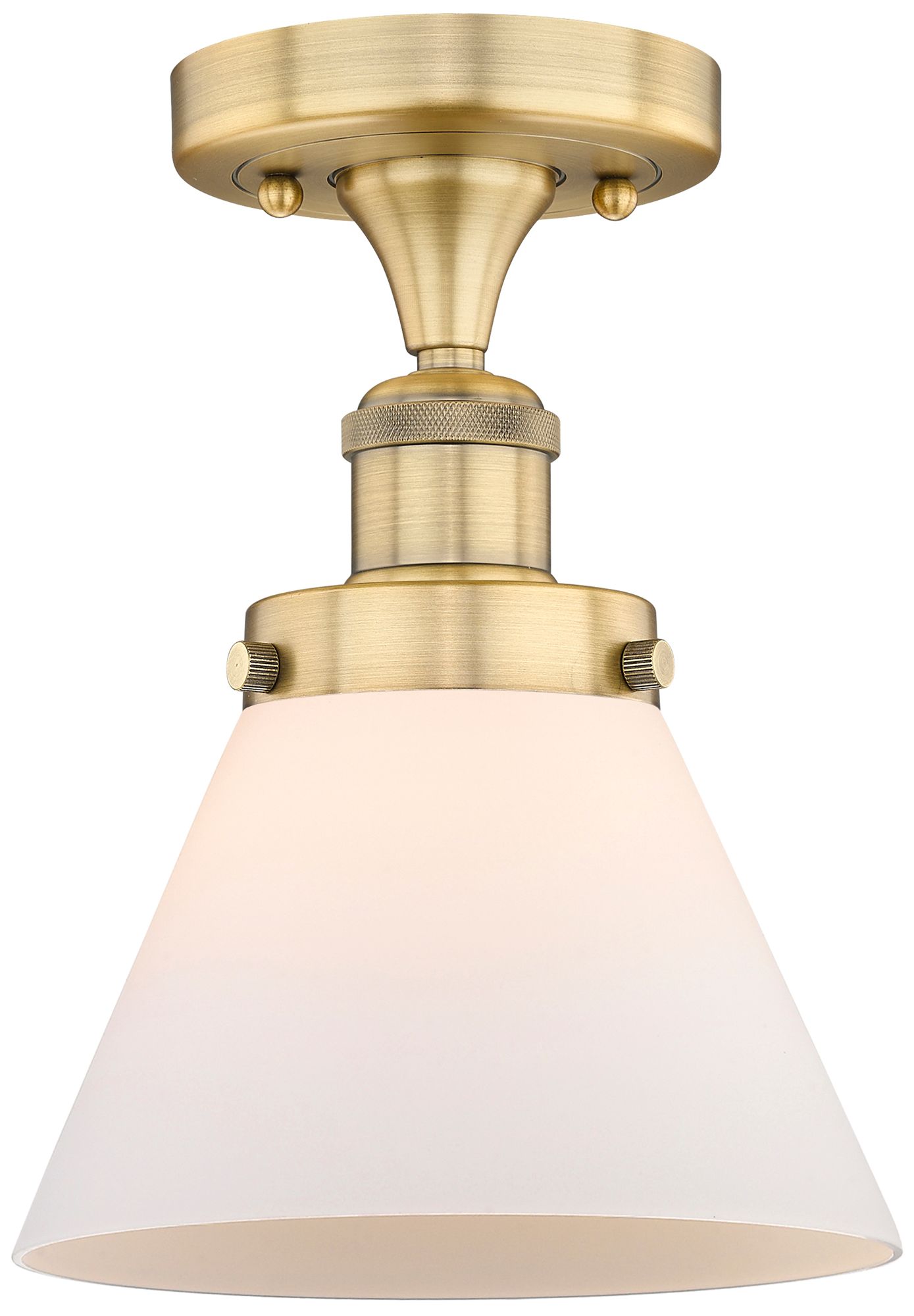 Cone 7.75" Wide Brushed Brass Semi.Flush Mount With Matte White Glass