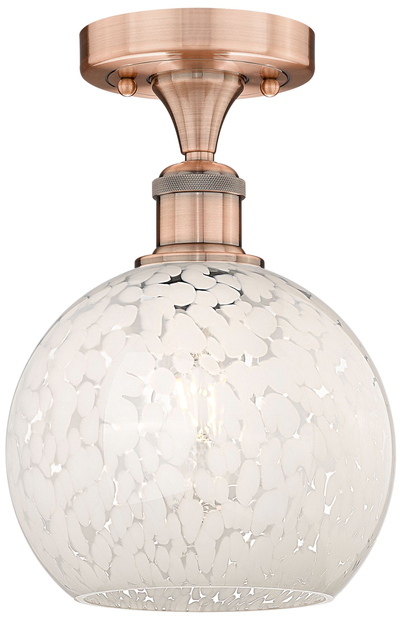 Edison 8" Wide Antique Copper Semi-Flush Mount With White Mouchette Sh