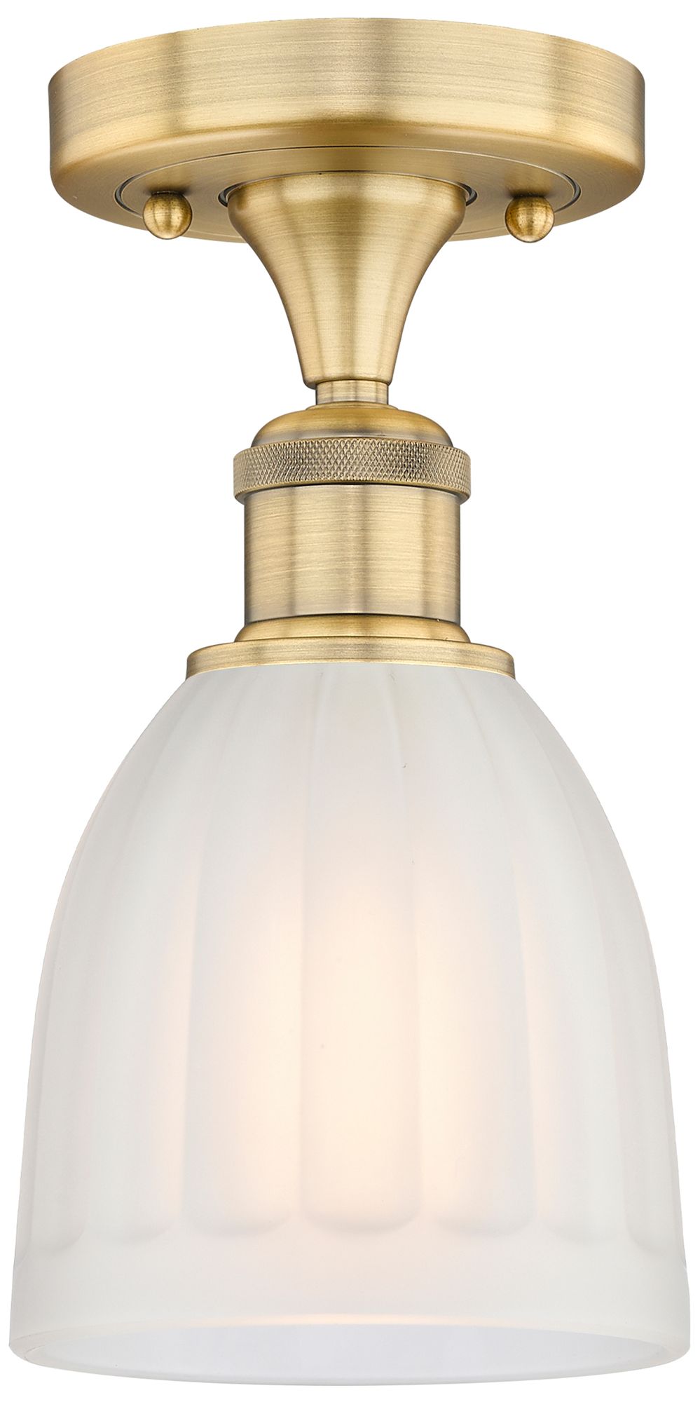 Brookfield 5.75" Wide Brushed Brass Semi.Flush Mount With White Glass