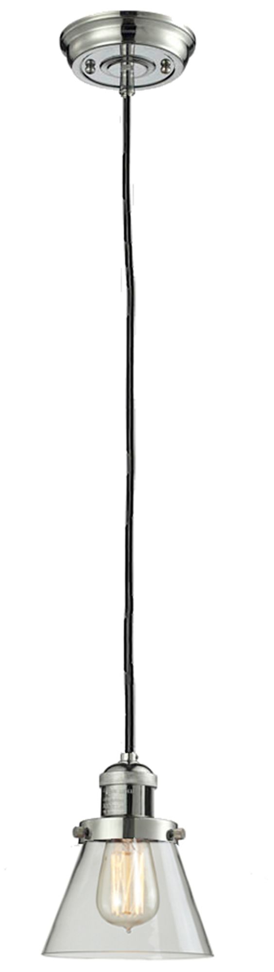 Franklin Cone 6" Polished Nickel Corded Mini Pendant w/ Clear Shade