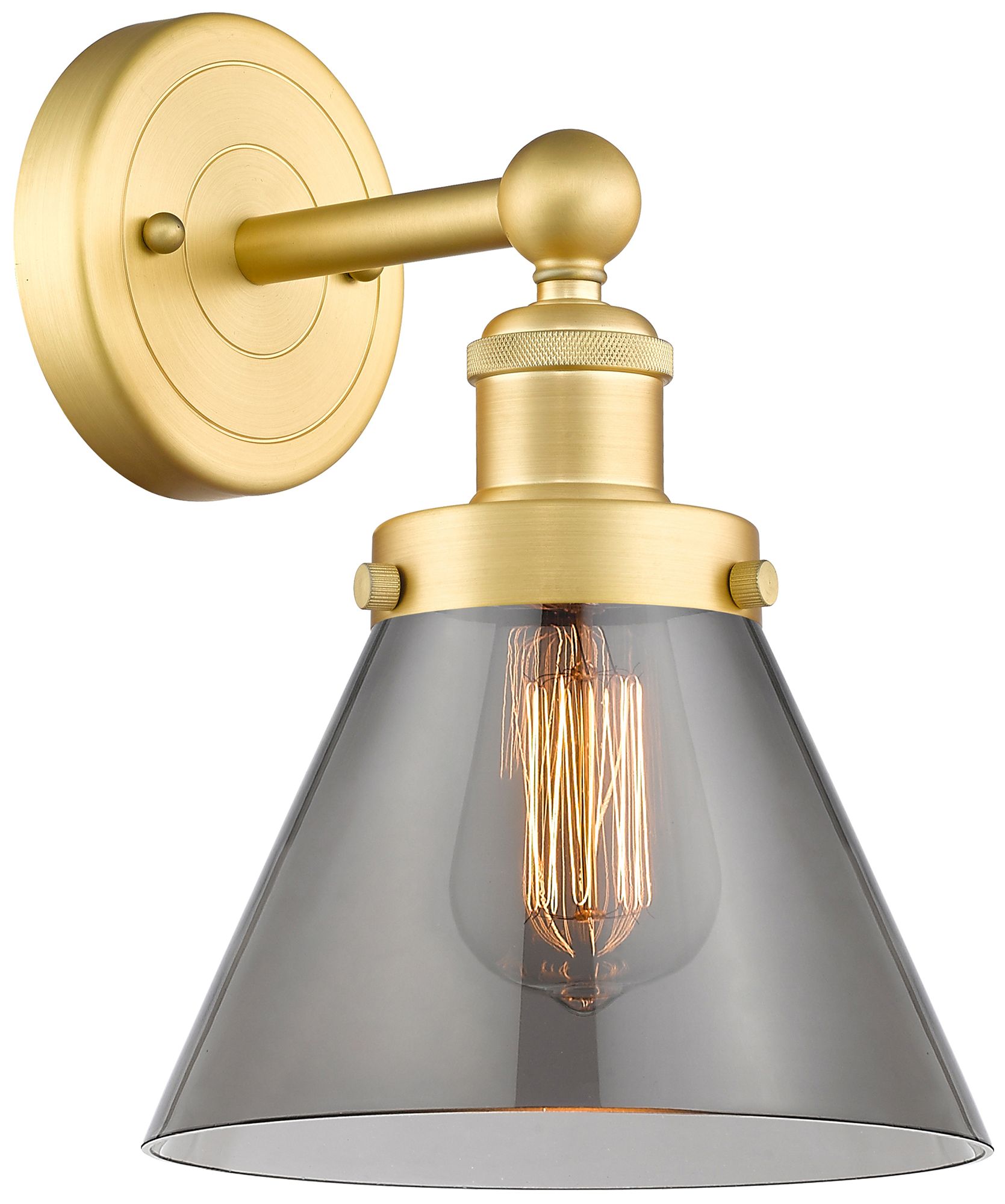 Large Cone 2.25" High Satin Gold Sconce With Plated Smoke Shade