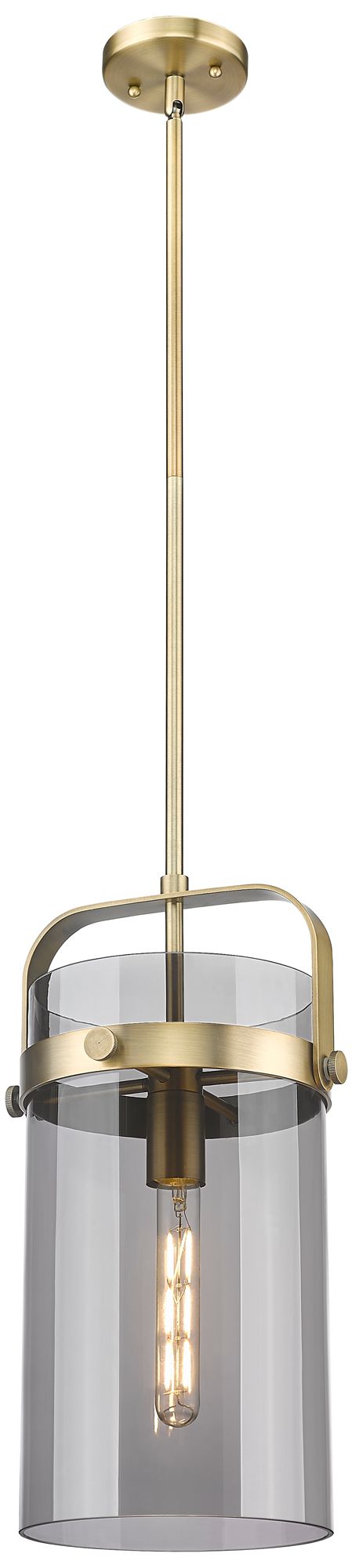 Pilaster 9.38" Wide Stem Hung Brushed Brass Pendant With Smoke Shade