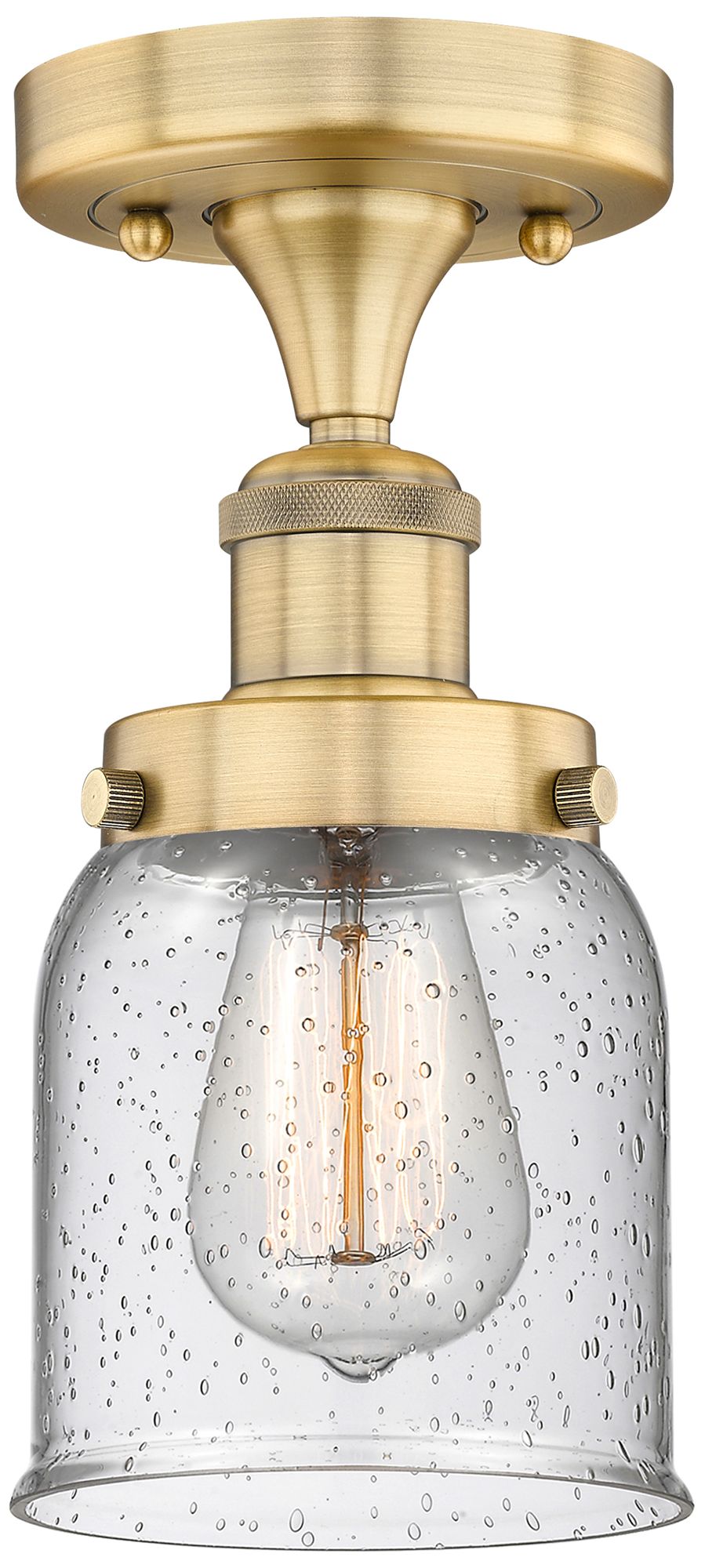 Bell 5" Wide Brushed Brass Semi.Flush Mount With Seedy Glass Shade