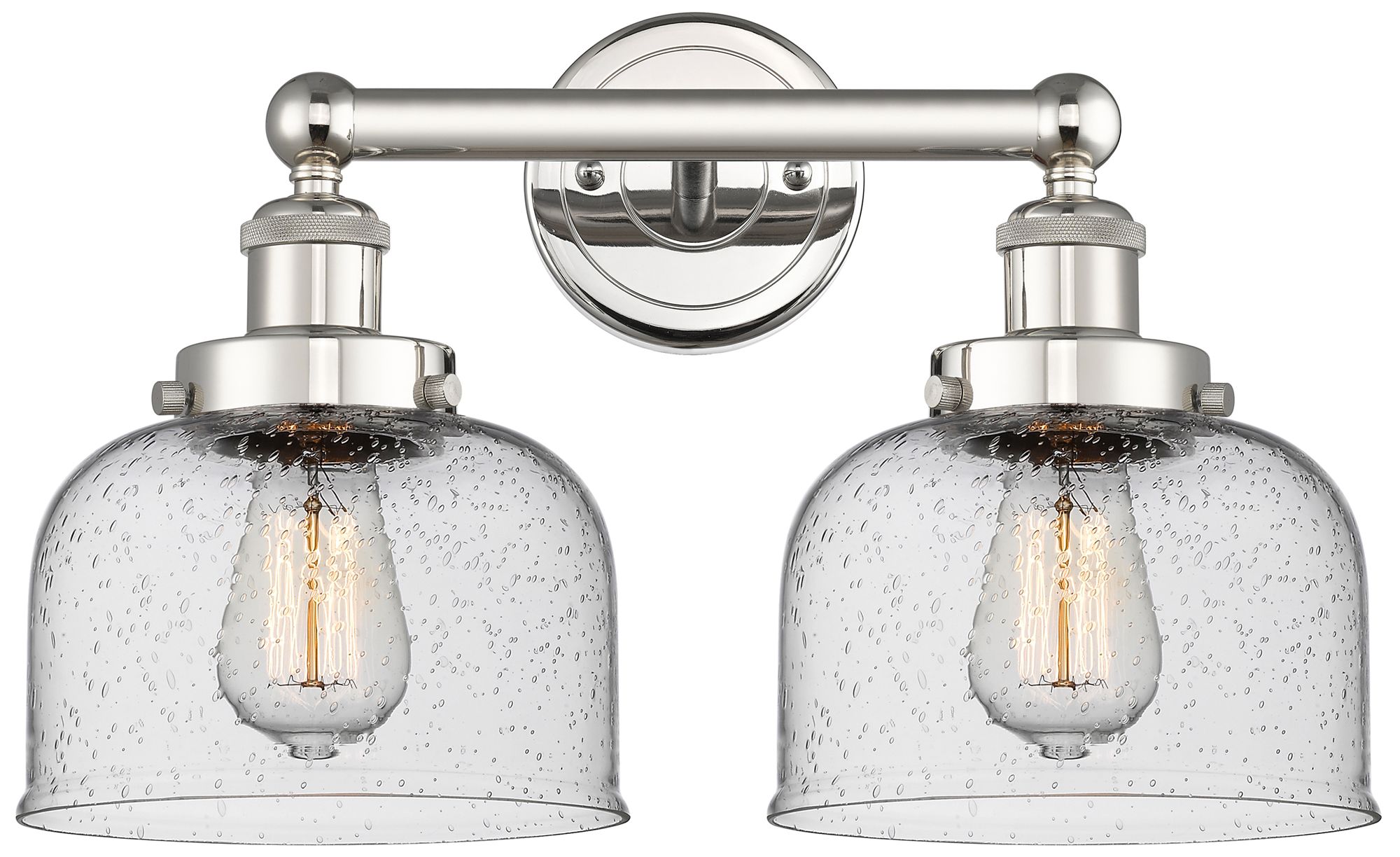 Edison Bell 15.5"W 2 Light Polished Nickel Bath Light With Seedy Shade