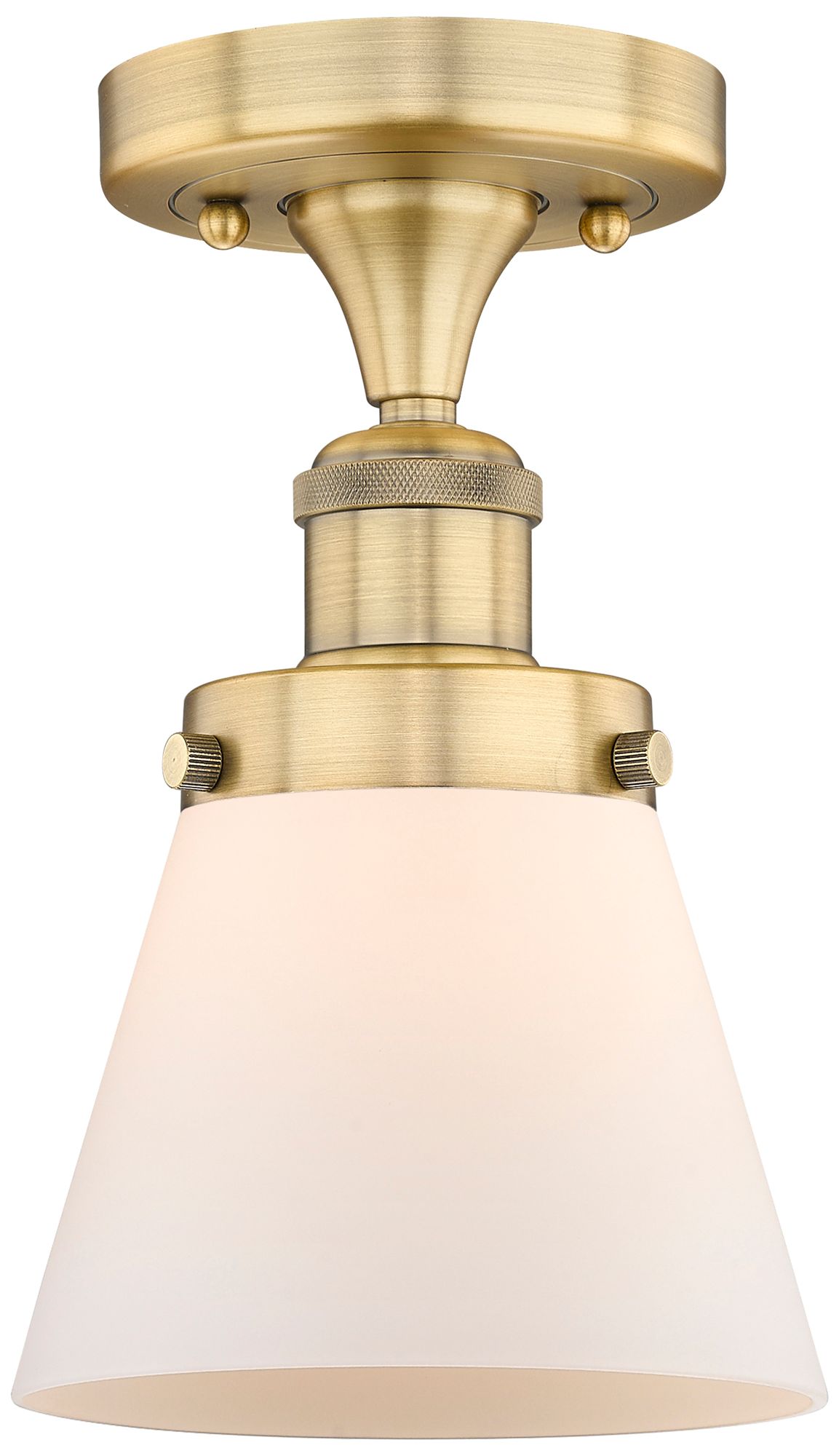 Cone 6.25" Wide Brushed Brass Semi.Flush Mount With Matte White Glass