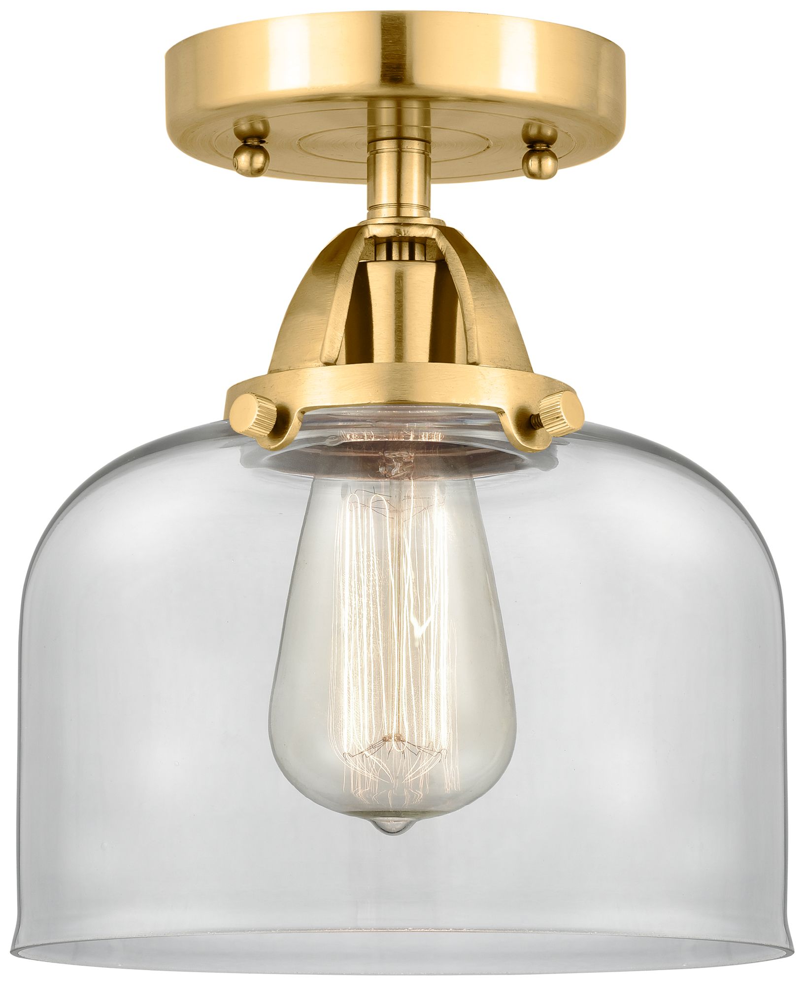 Nouveau 2 Bell 8" Semi-Flush Mount - Satin Gold - Clear Shade
