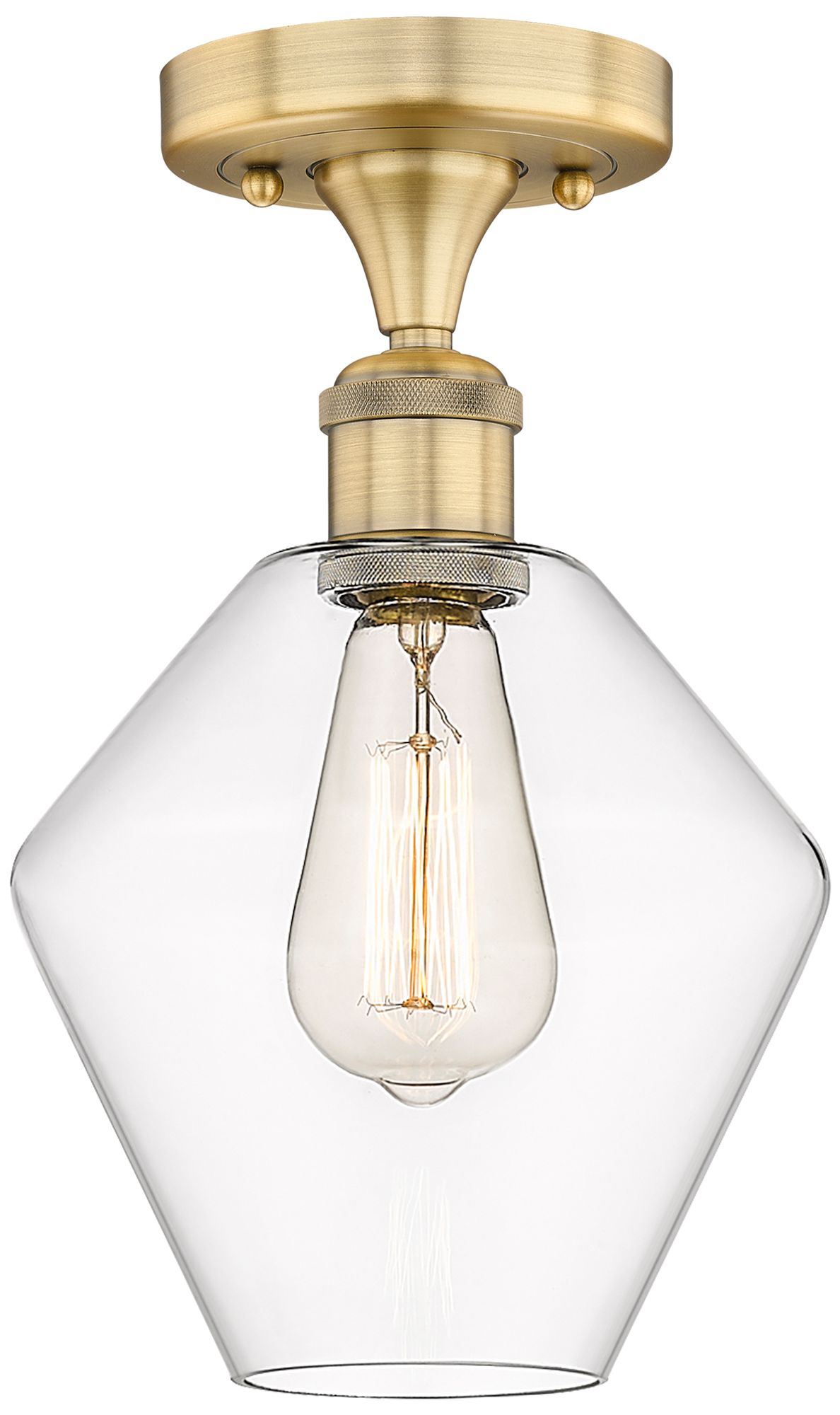 Cindyrella 8" Wide Brushed Brass Semi.Flush Mount With Clear Glass Sha