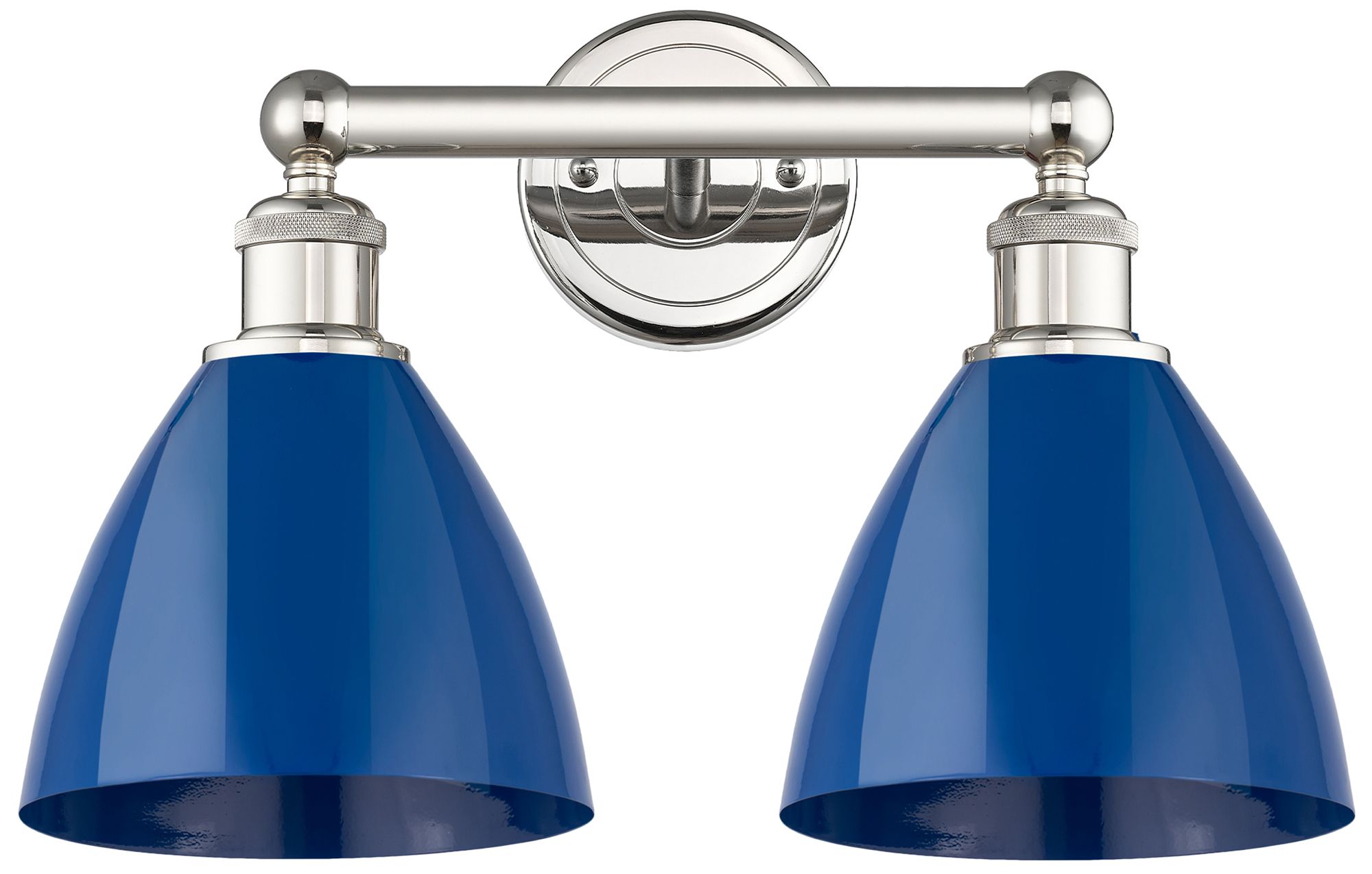 Plymouth Dome 16.5"W 2 Light Polished Nickel Bath Light With Blue Shad
