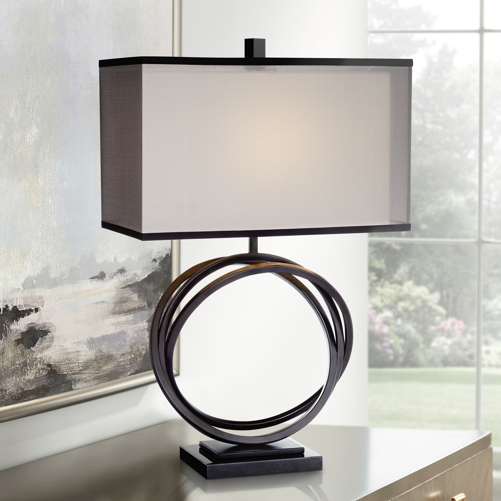 Possini Euro Stellar 28 1/4" Double Shade Black Ring Modern Table Lamp