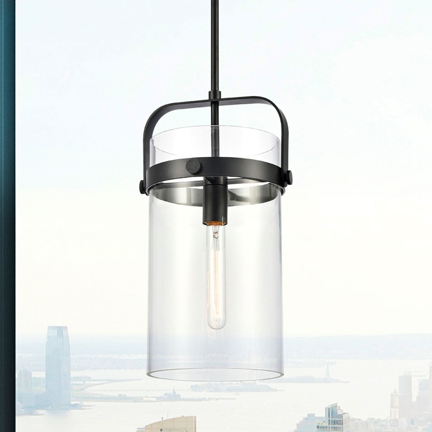 Pilaster 9.38" Wide Stem Hung Matte Black Pendant With Clear Shade