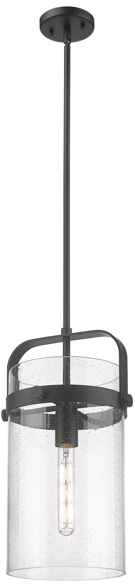 Pilaster 9.38" Wide Stem Hung Matte Black Pendant With Seedy Shade
