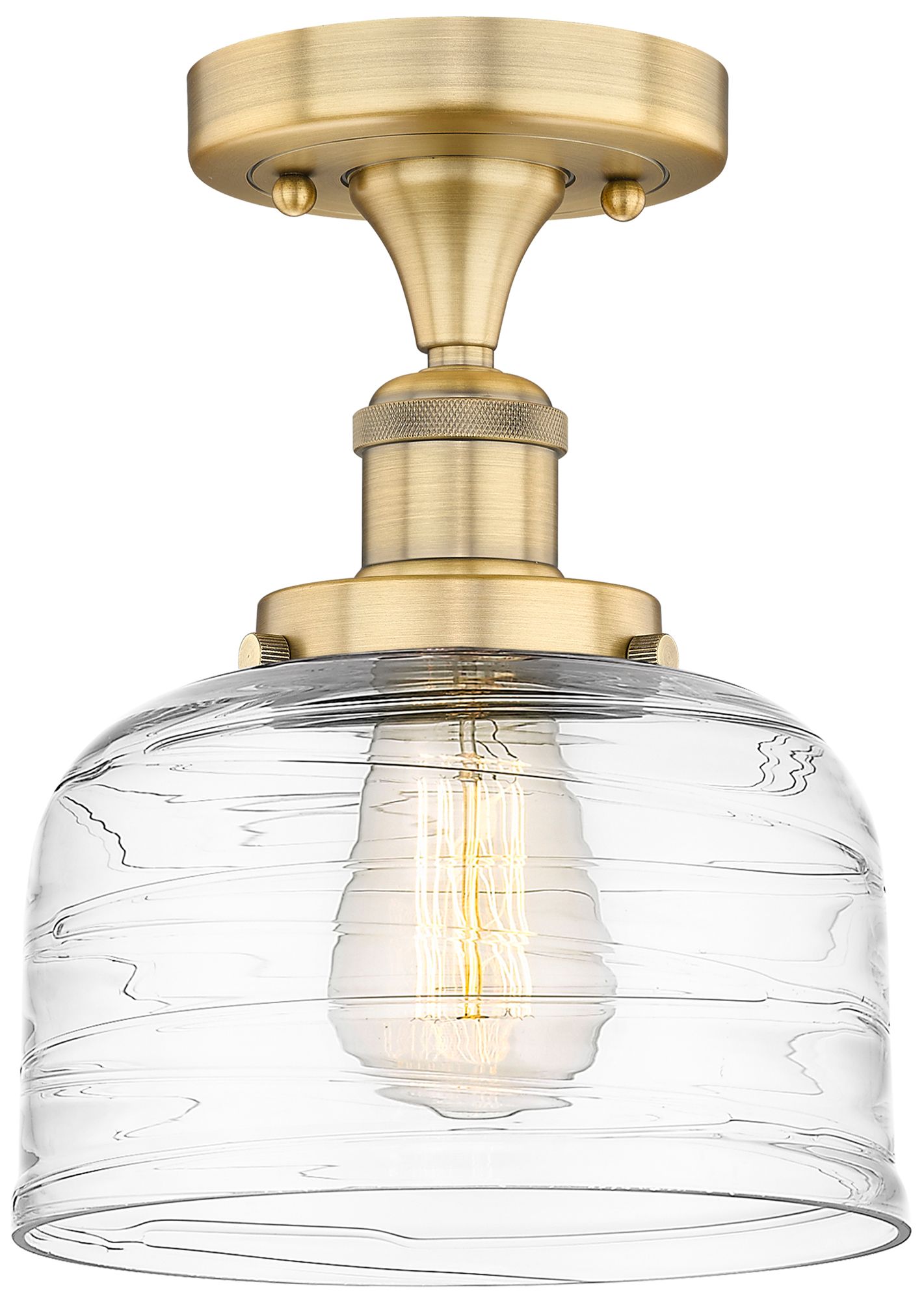 Bell 7.75"W Brushed Brass Semi.Flush Mount w/ Clear Deco Swirl Glass S