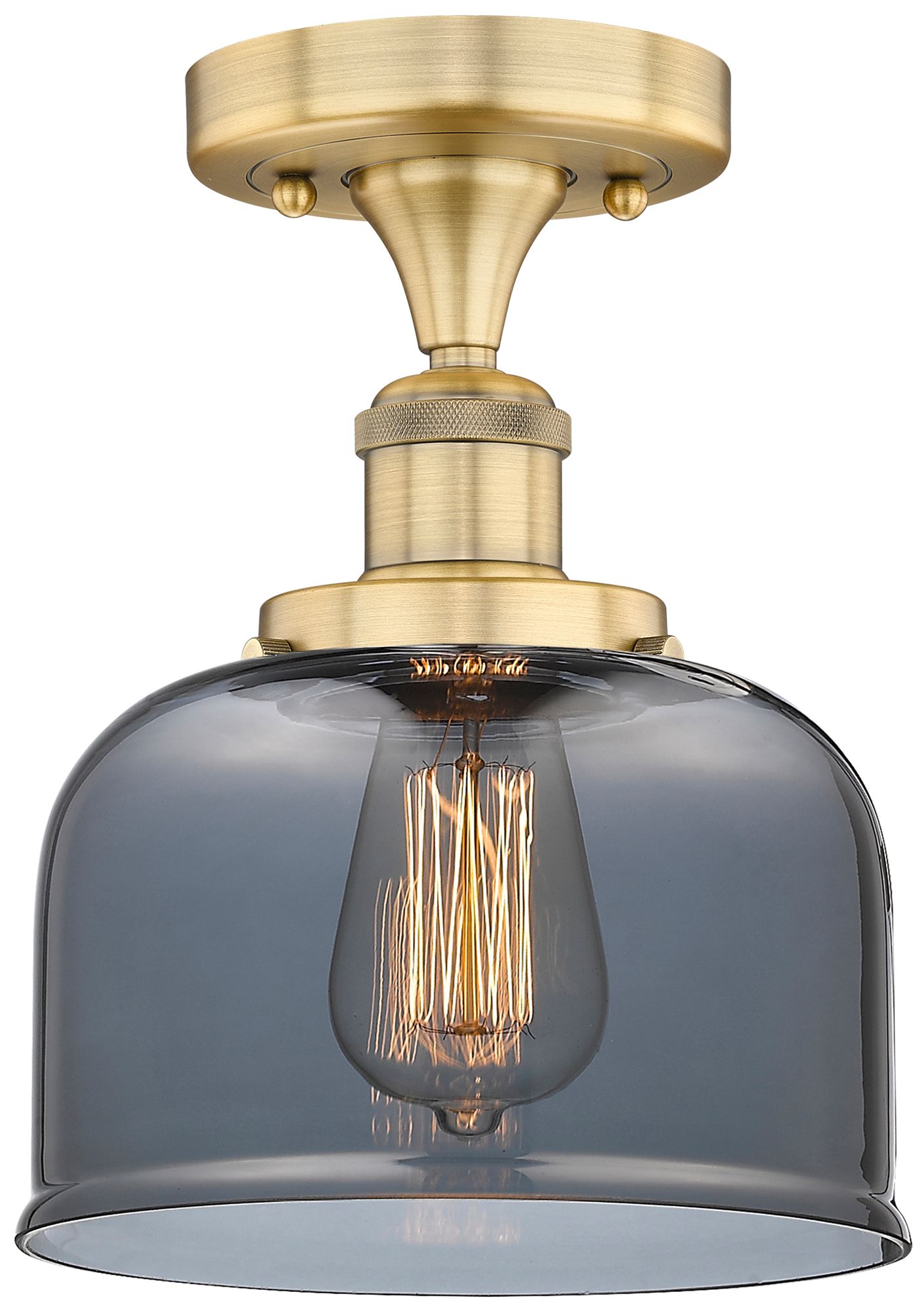 Bell 7.75"W Brushed Brass Semi.Flush Mount With Plated Smoke Glass Sha