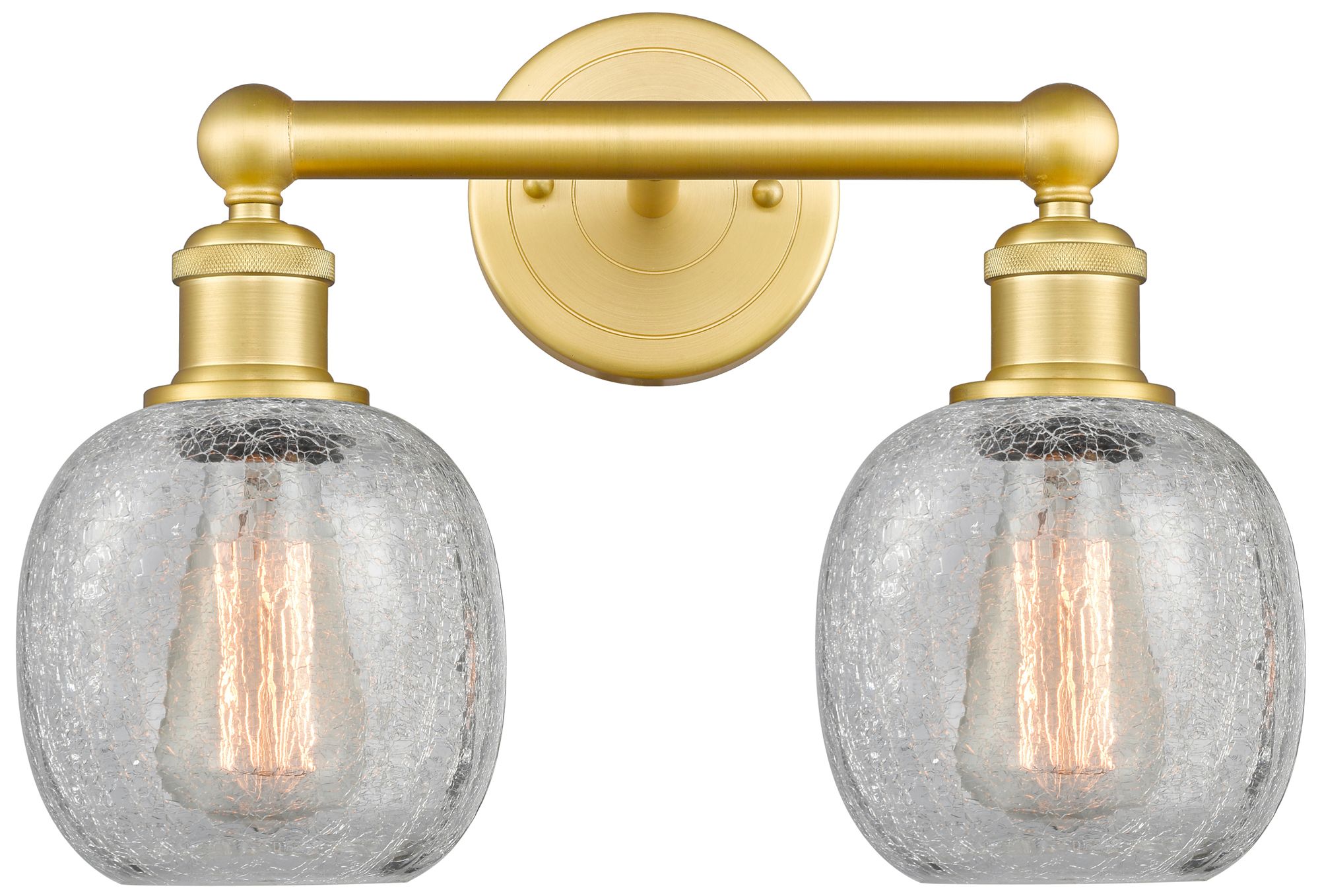 Belfast 15"W 2 Light Satin Gold Bath Vanity Light With Clear Crackle S