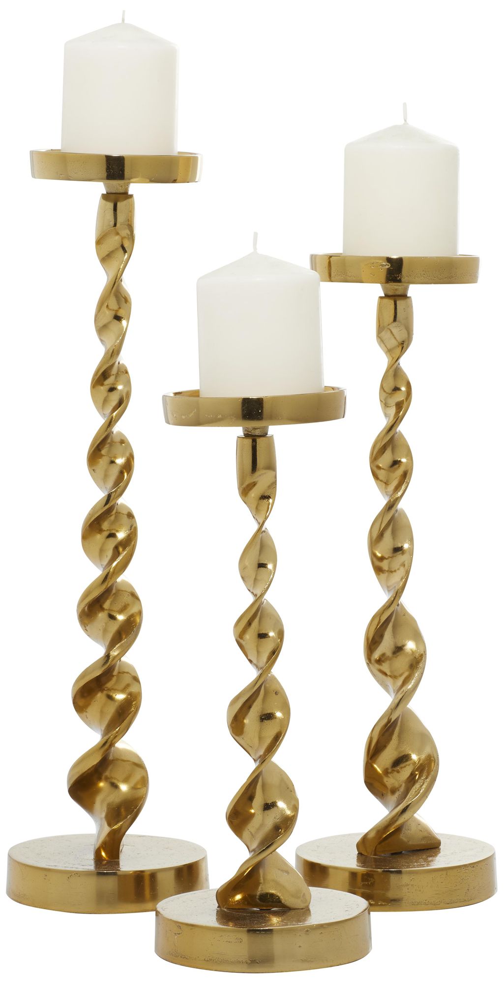 Gold Aluminum Metal Decorative Candle Holder, Set of 3 19", 17", 14"H