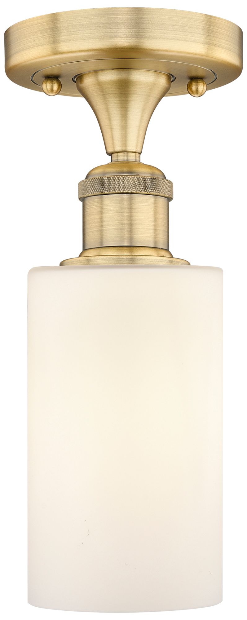 Clymer 3.88"W Brushed Brass Semi.Flush Mount With Matte White Glass Sh