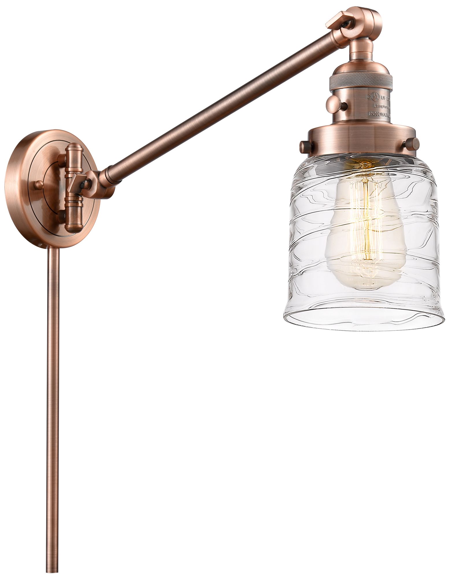 Bell 8" Antique Copper Swing Arm With Deco Swirl Shade