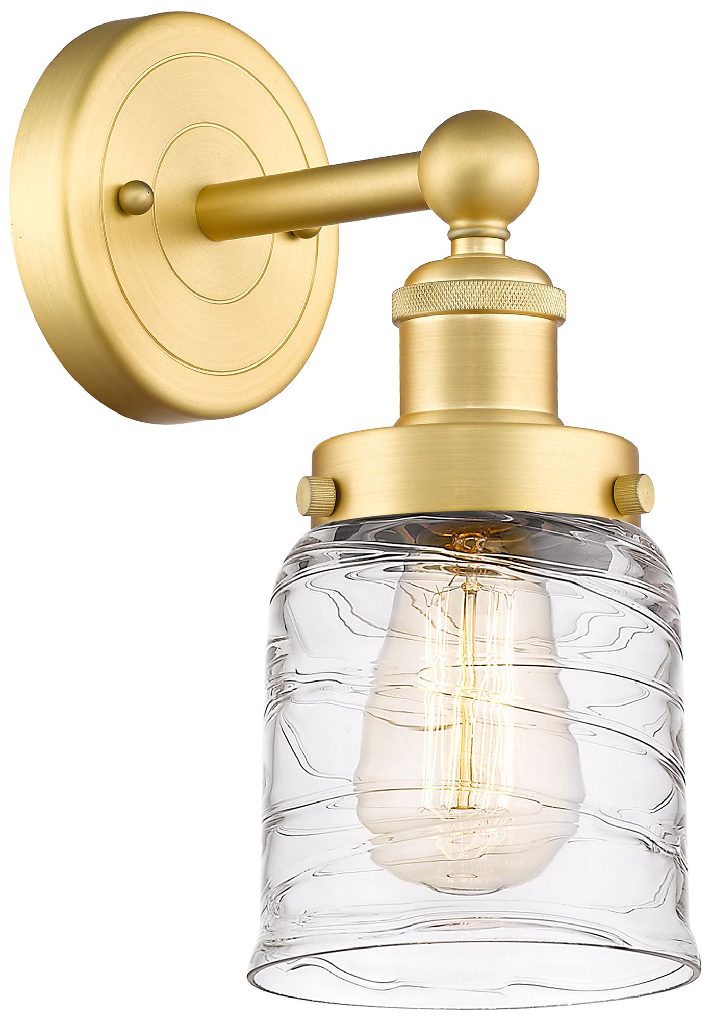Small Bell 2.25" High Satin Gold Sconce With Deco Swirl Shade