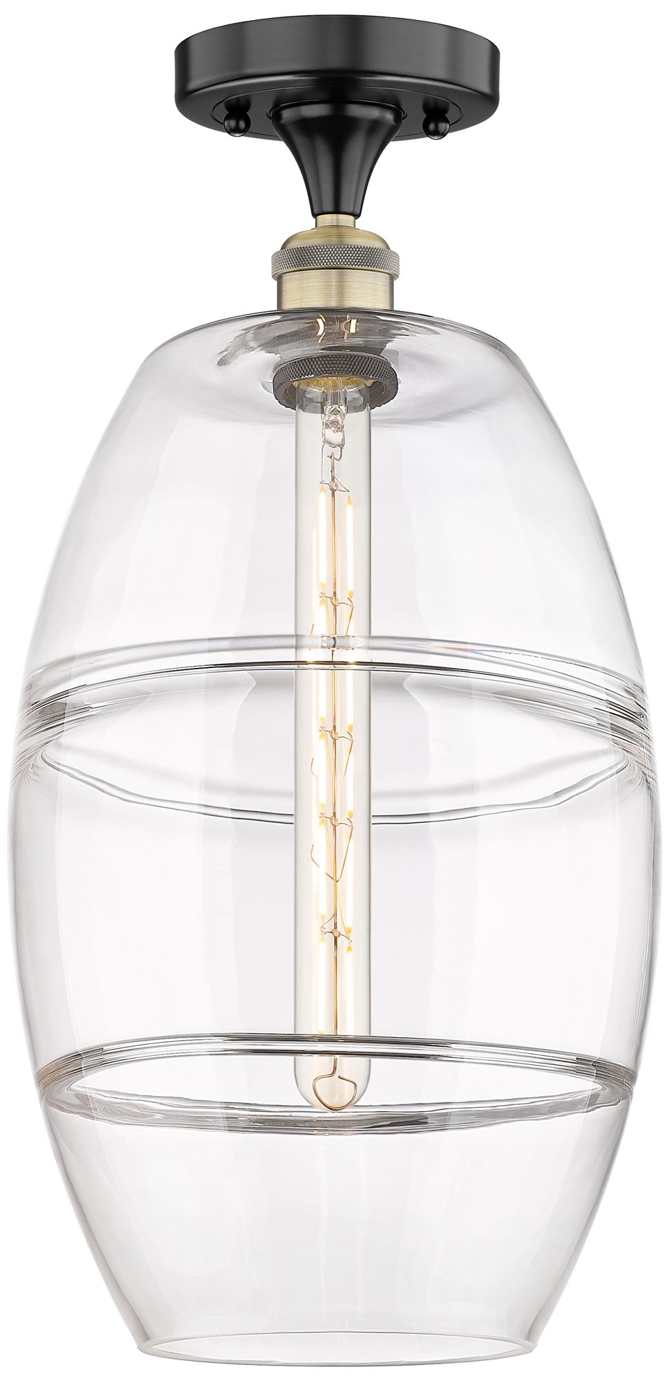 Edison Vaz 10" Wide Black Antique Brass Semi-Flush Mount With Clear Sh