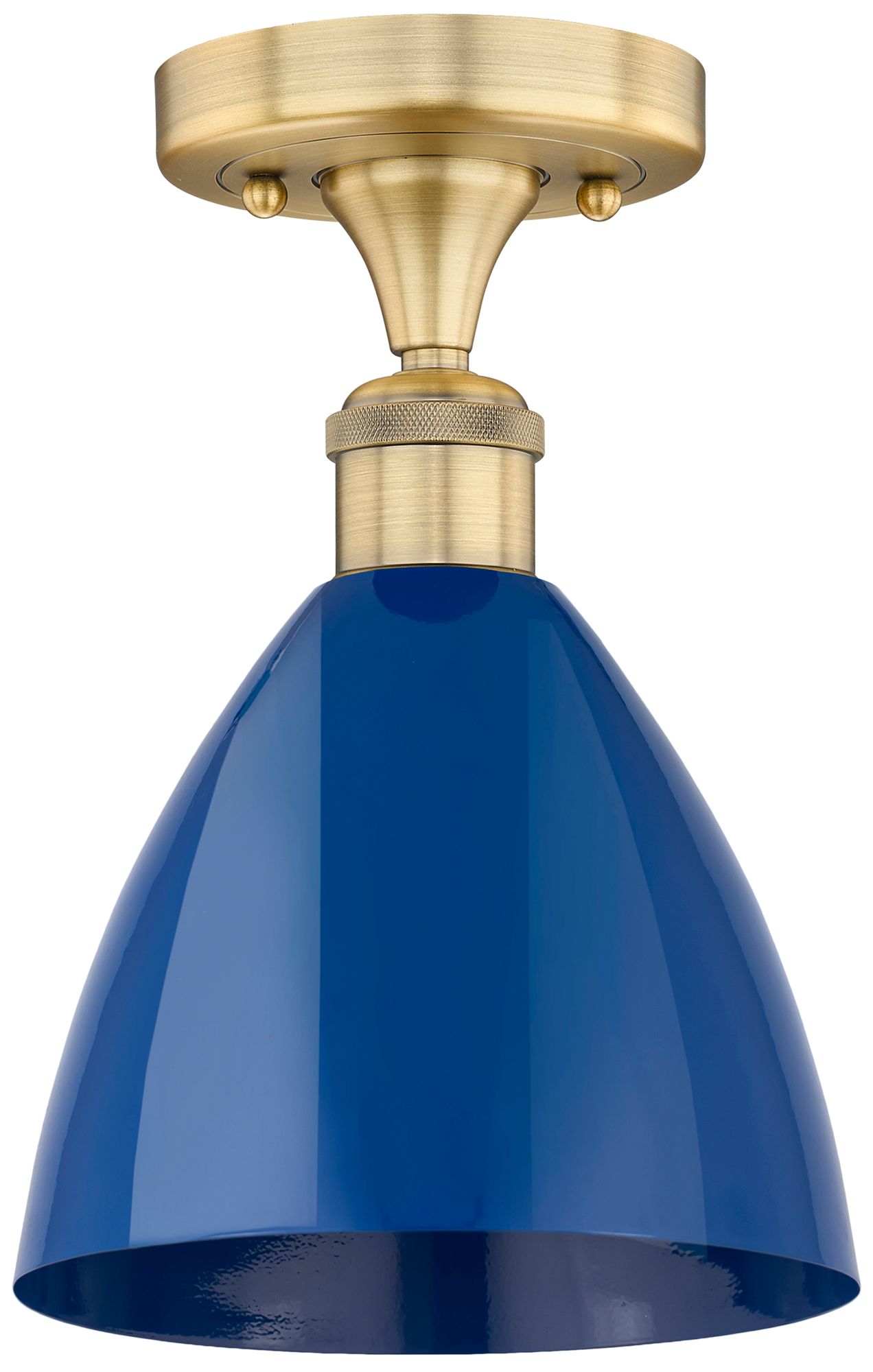 Plymouth Dome 7.5" Wide Brushed Brass Semi.Flush Mount With Blue Shade