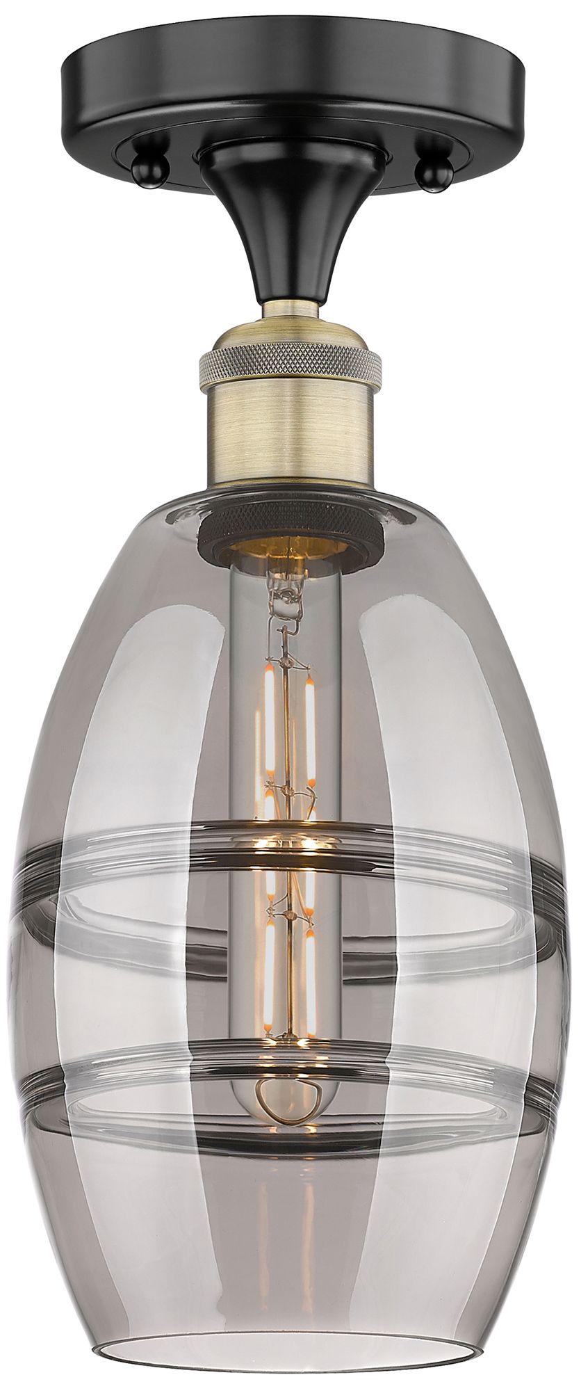Edison Vaz 5.88"W Black Antique Brass Semi-Flush Mount w/ Light Smoke