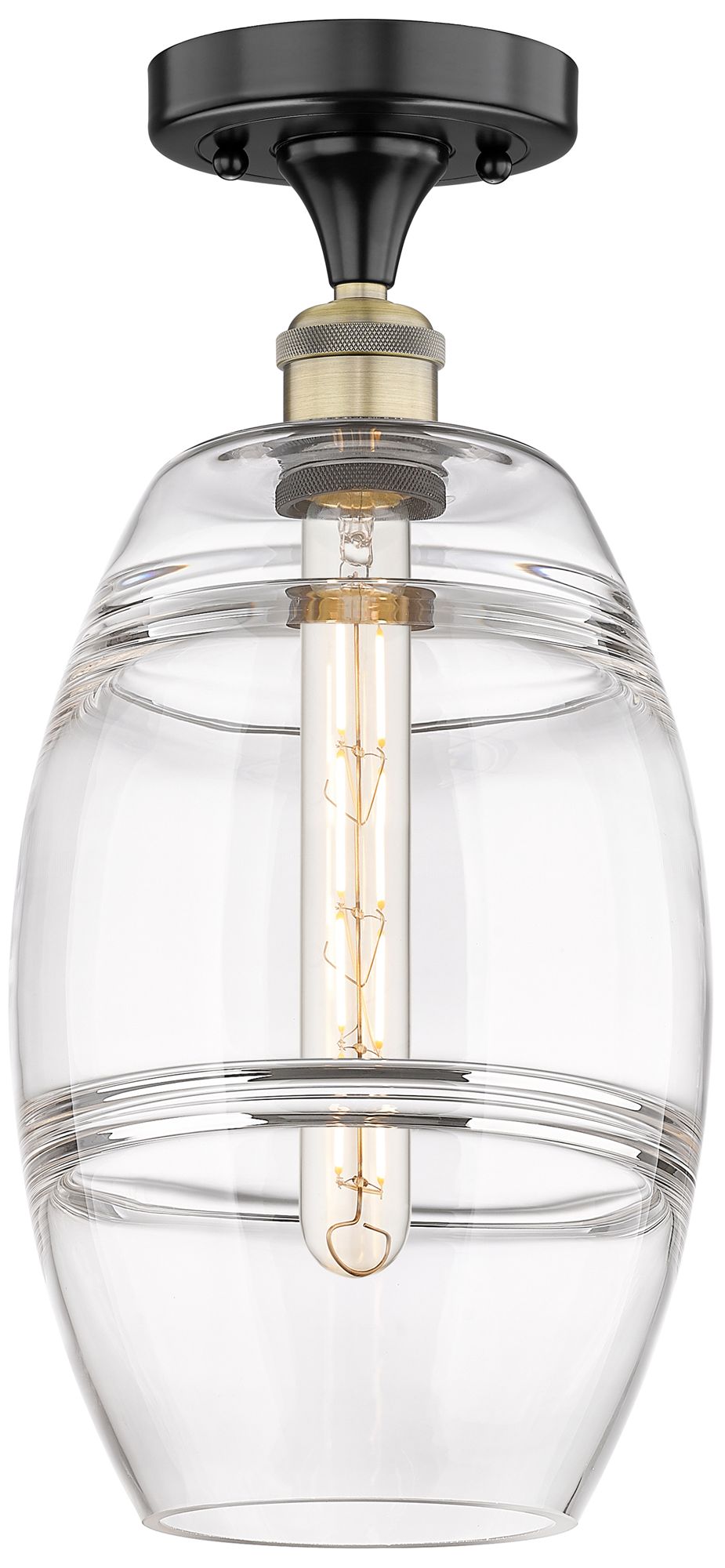 Edison Vaz 8" Wide Black Antique Brass Semi-Flush Mount With Clear Sha