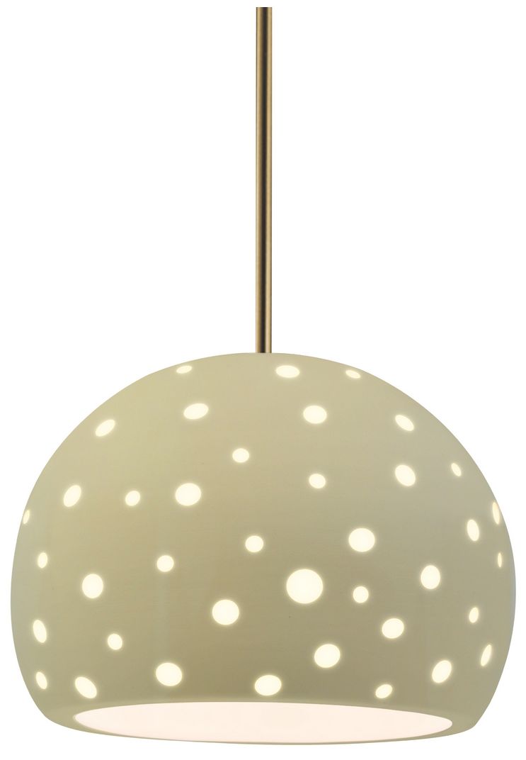 Perforated Globe 10"W Vanilla, Antique Brass Pendant - White Cord