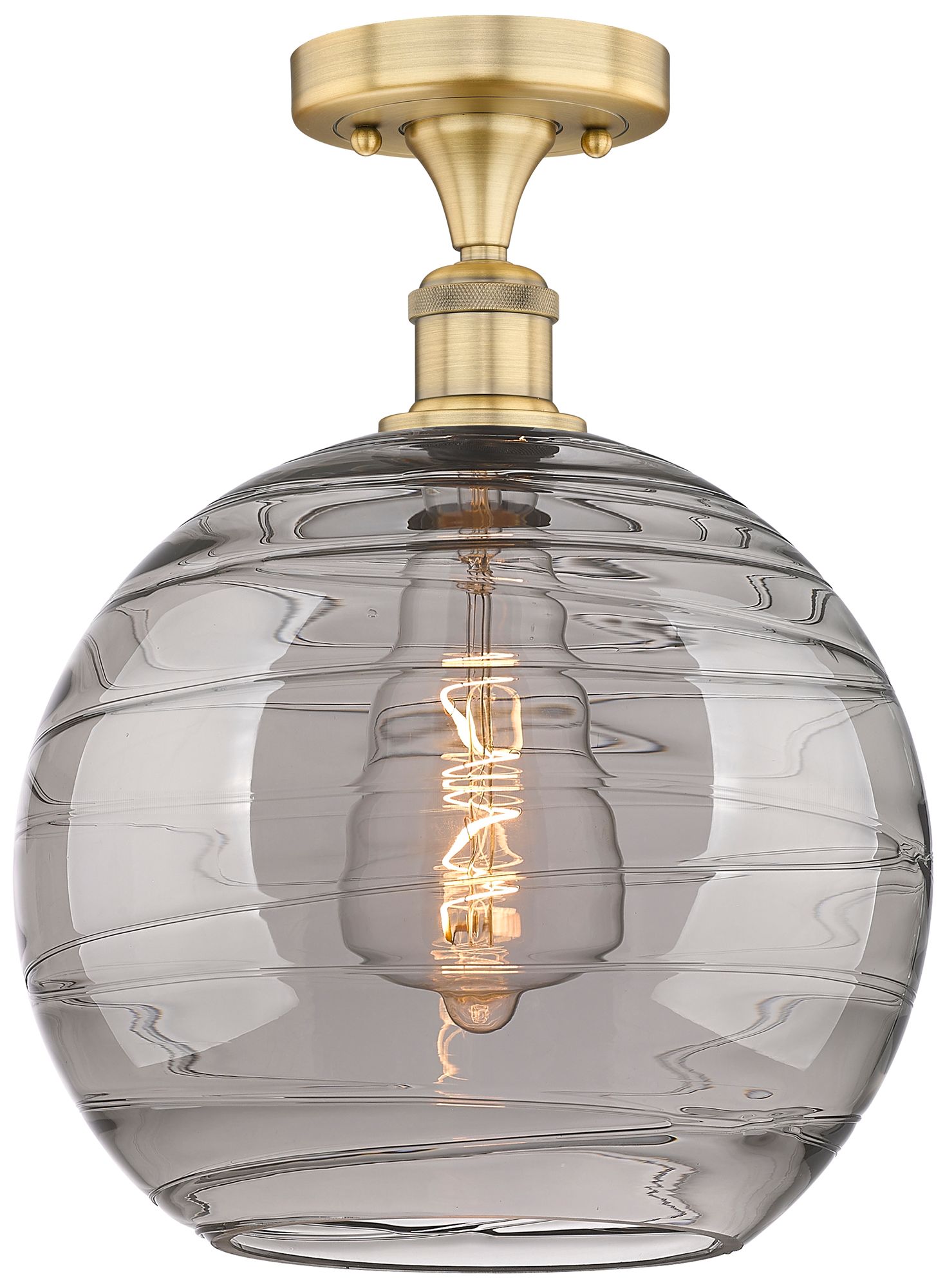 Edison Athens 12"W Brushed Brass Semi-Flush Mount w/ Smoke Swirl Shade