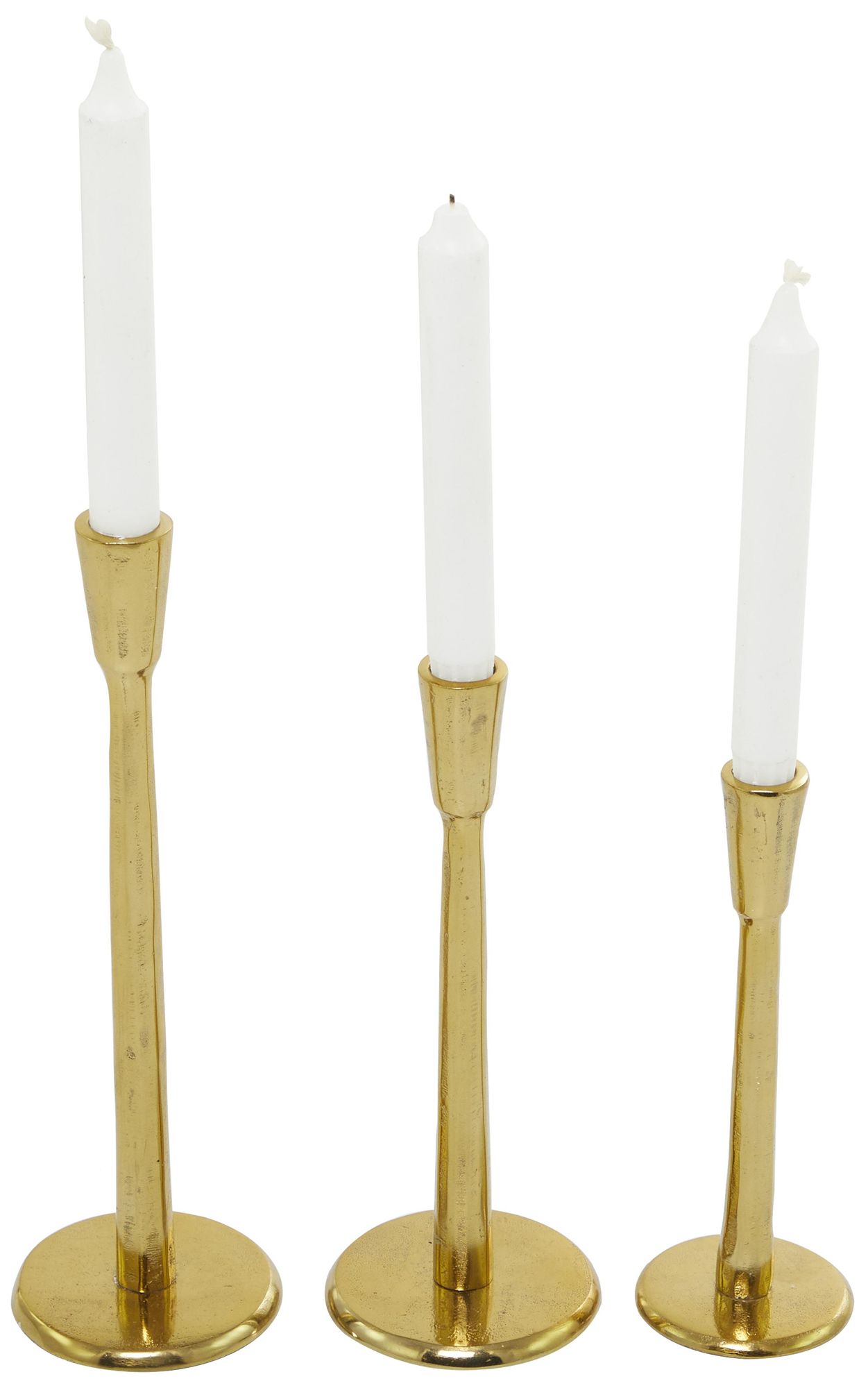 Gold Aluminum Metal Slim Decorative Candle Holder, Set of 3 12", 10", 8"H