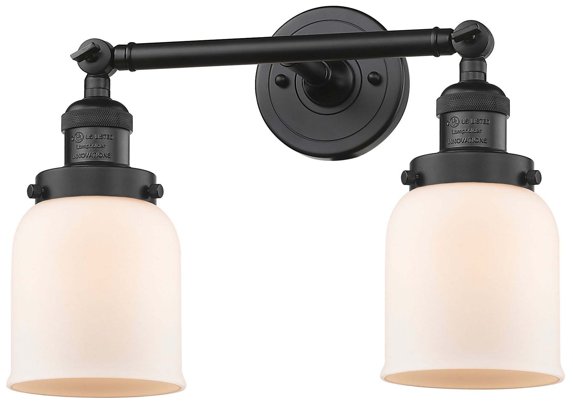 Small Bell 16" 2-Light Matte Black Tiltable Bath Light w/ Matte White