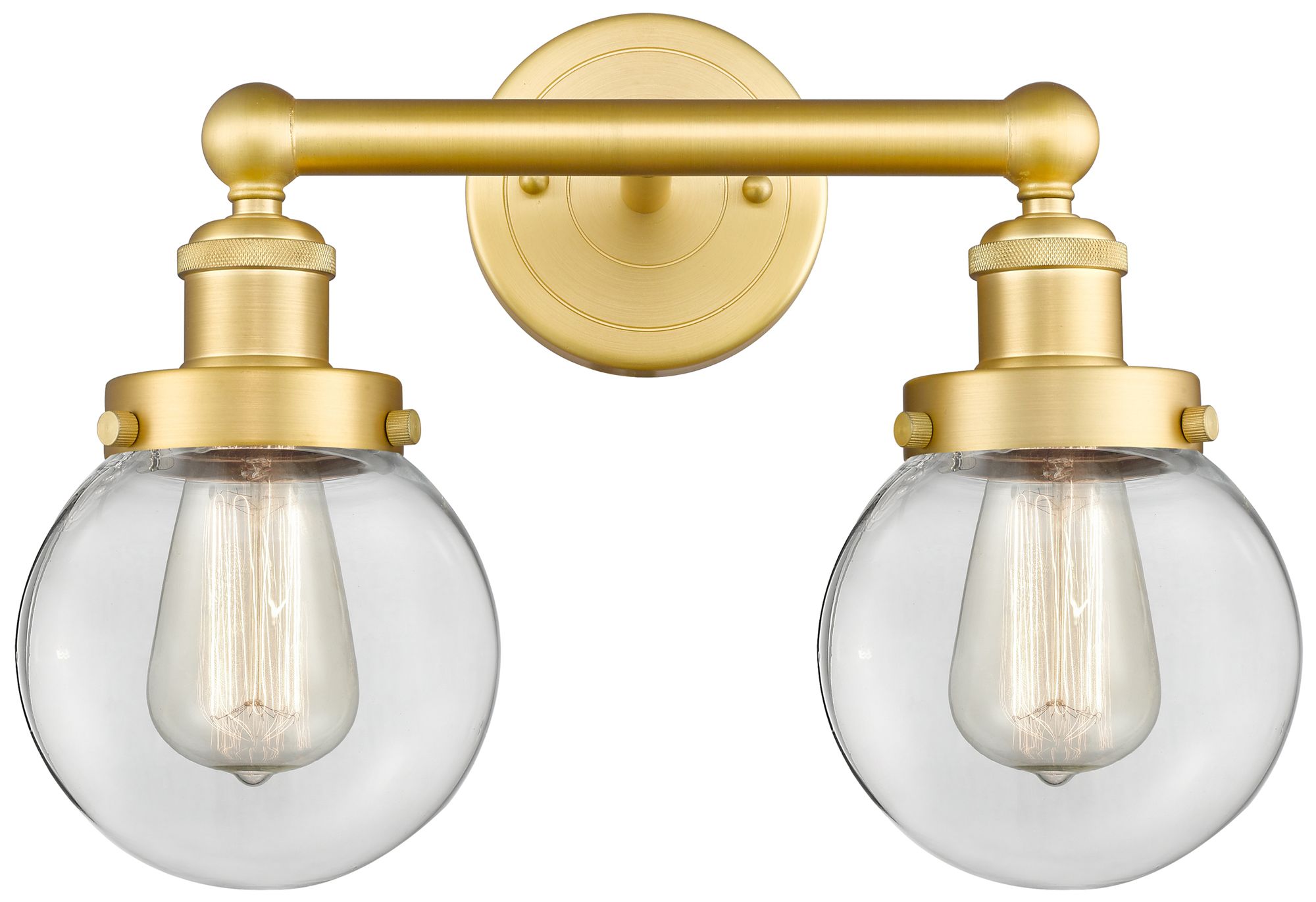 Small Edison Beacon 15.5"W 2 Light Satin Gold Bath Light With Clear Sh