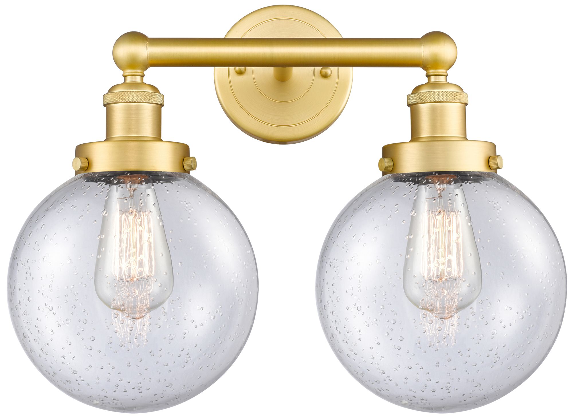 Edison Large Beacon 15.5"W 2 Light Satin Gold Bath Light With Seedy Sh