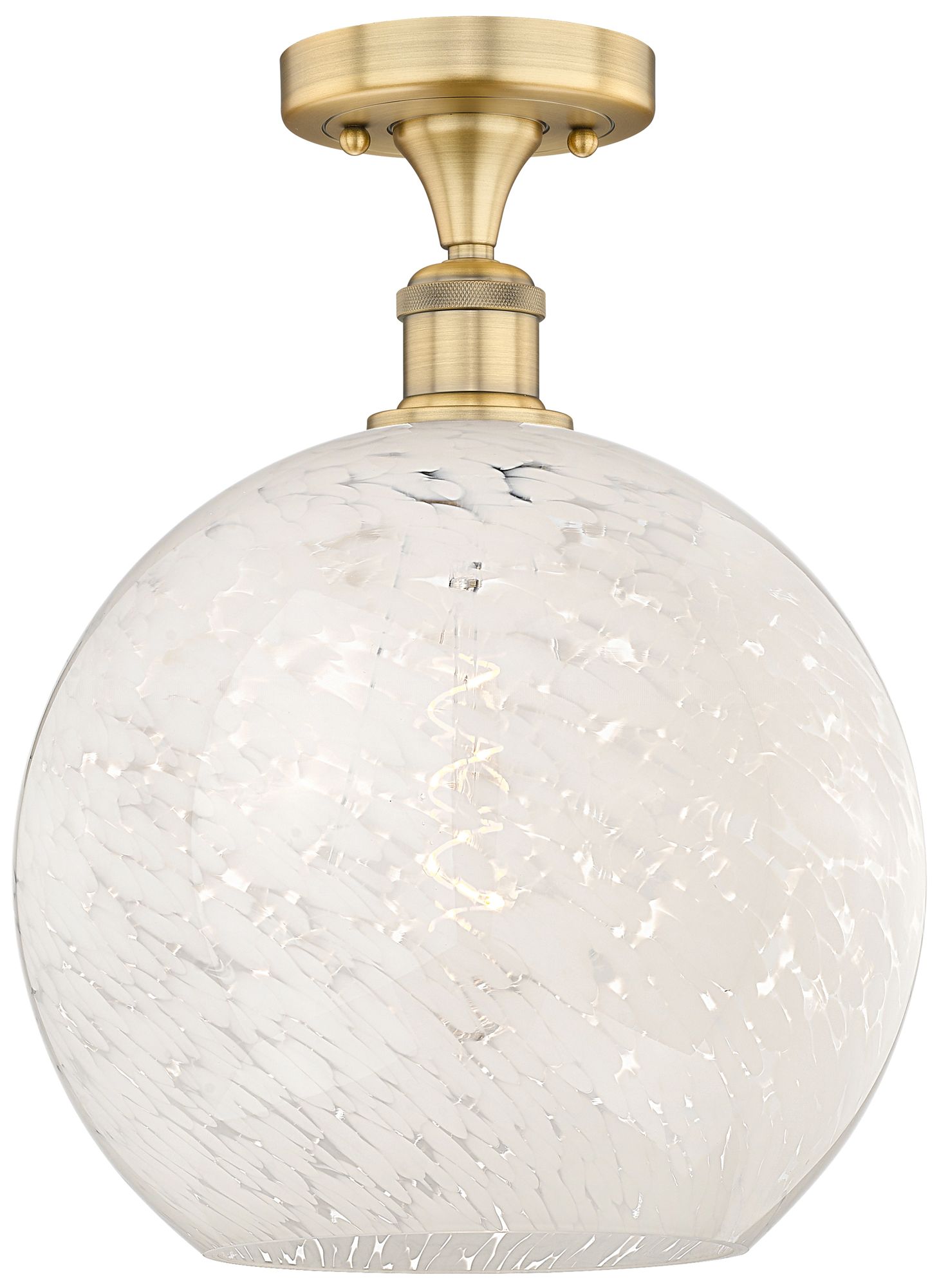 Edison 12" Wide Brushed Brass Semi-Flush Mount With White Mouchette Sh