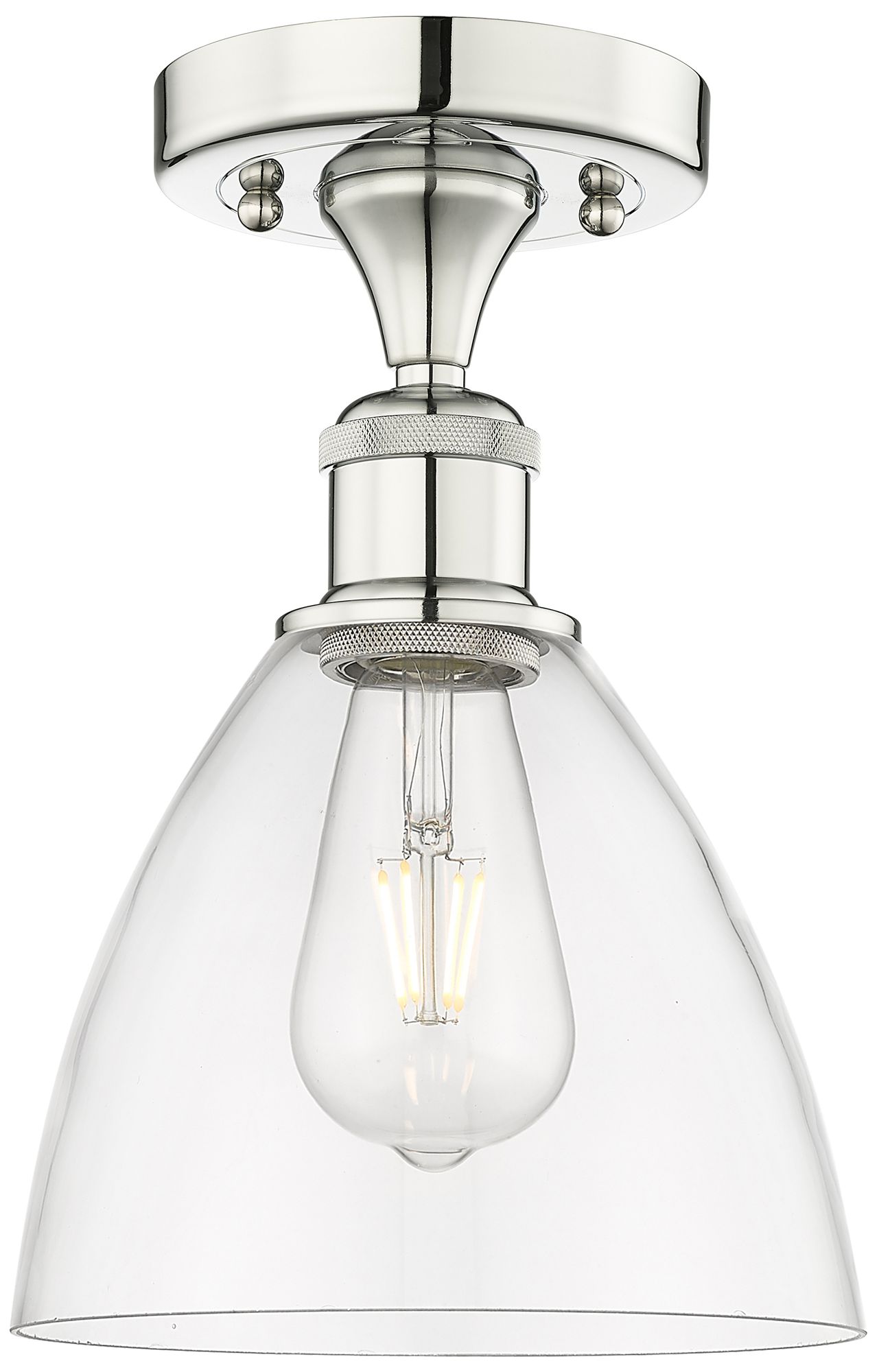 Bristol Glass 7.5"W Polished Nickel Semi.Flush Mount With Clear Glass