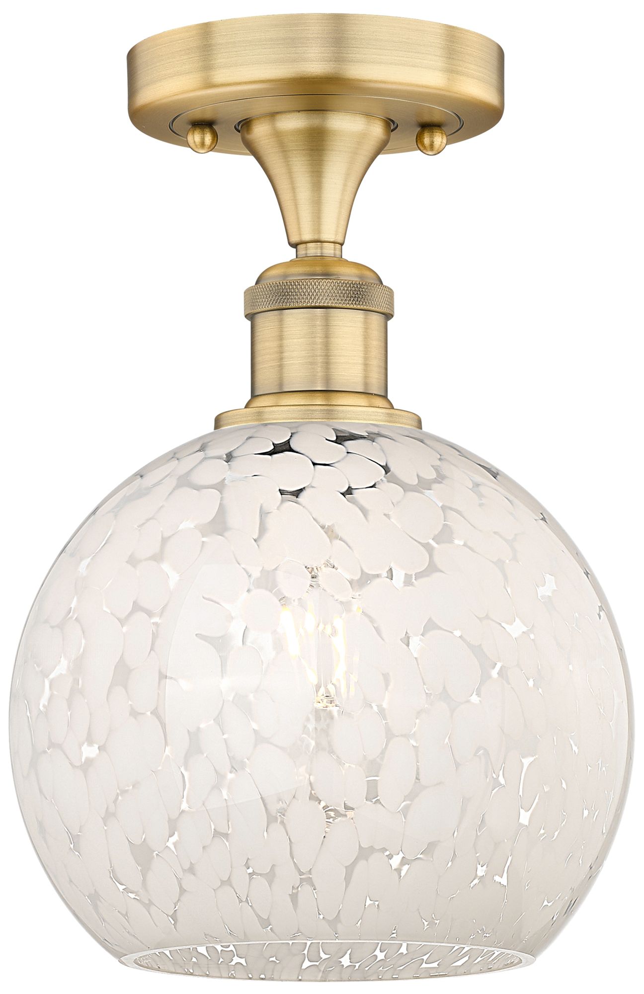 Edison 8" Wide Brushed Brass Semi-Flush Mount With White Mouchette Sha
