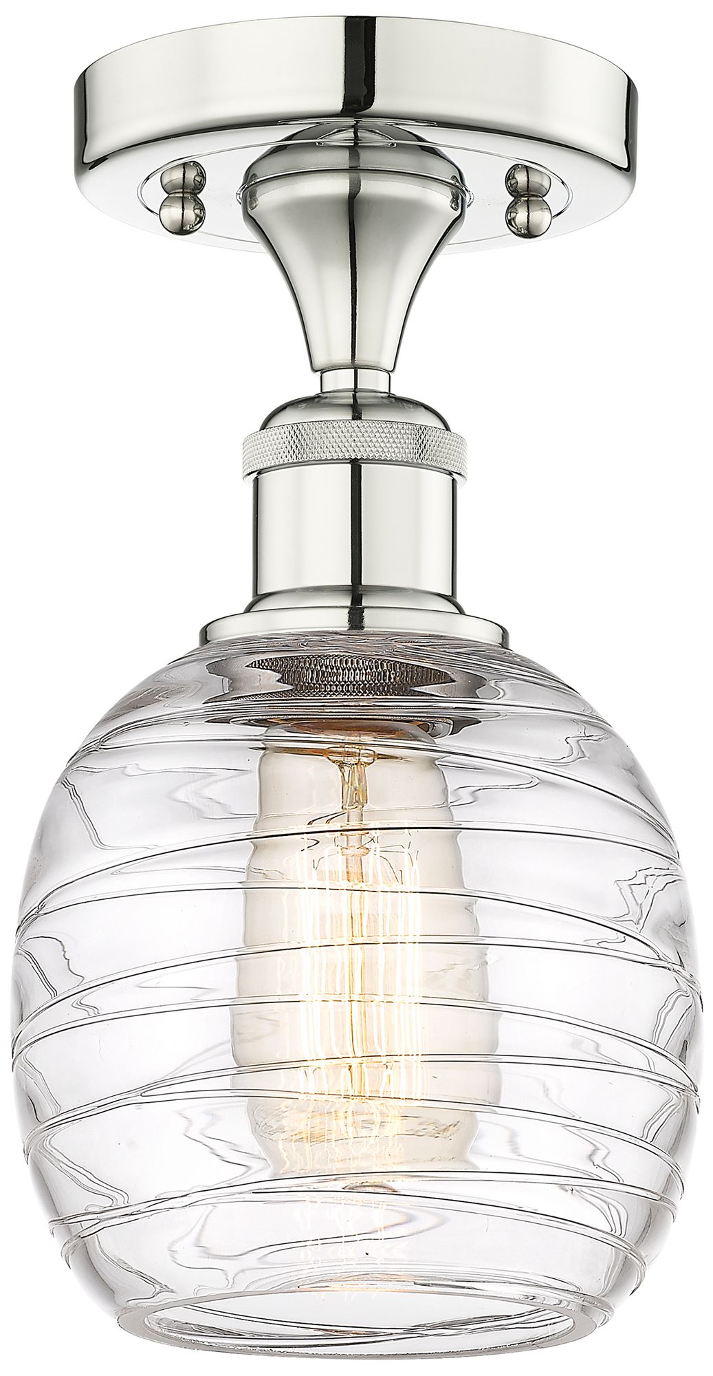 Belfast 6" Wide Polished Nickel Flush Mount With Deco Swirl Glass Shad