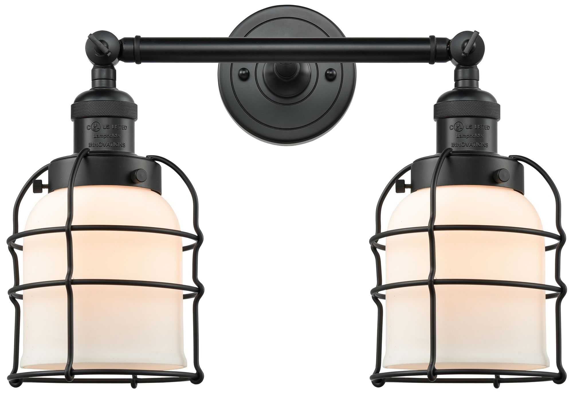 Franklin Bell Cage 16" 2-Light Matte Black Bath Light w/ White Shade