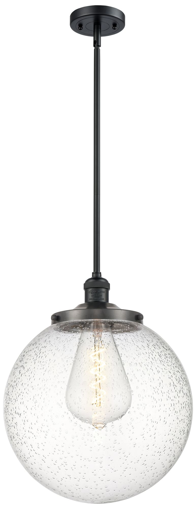Beacon 14" Wide Matte Black Pendant With Seedy Shade