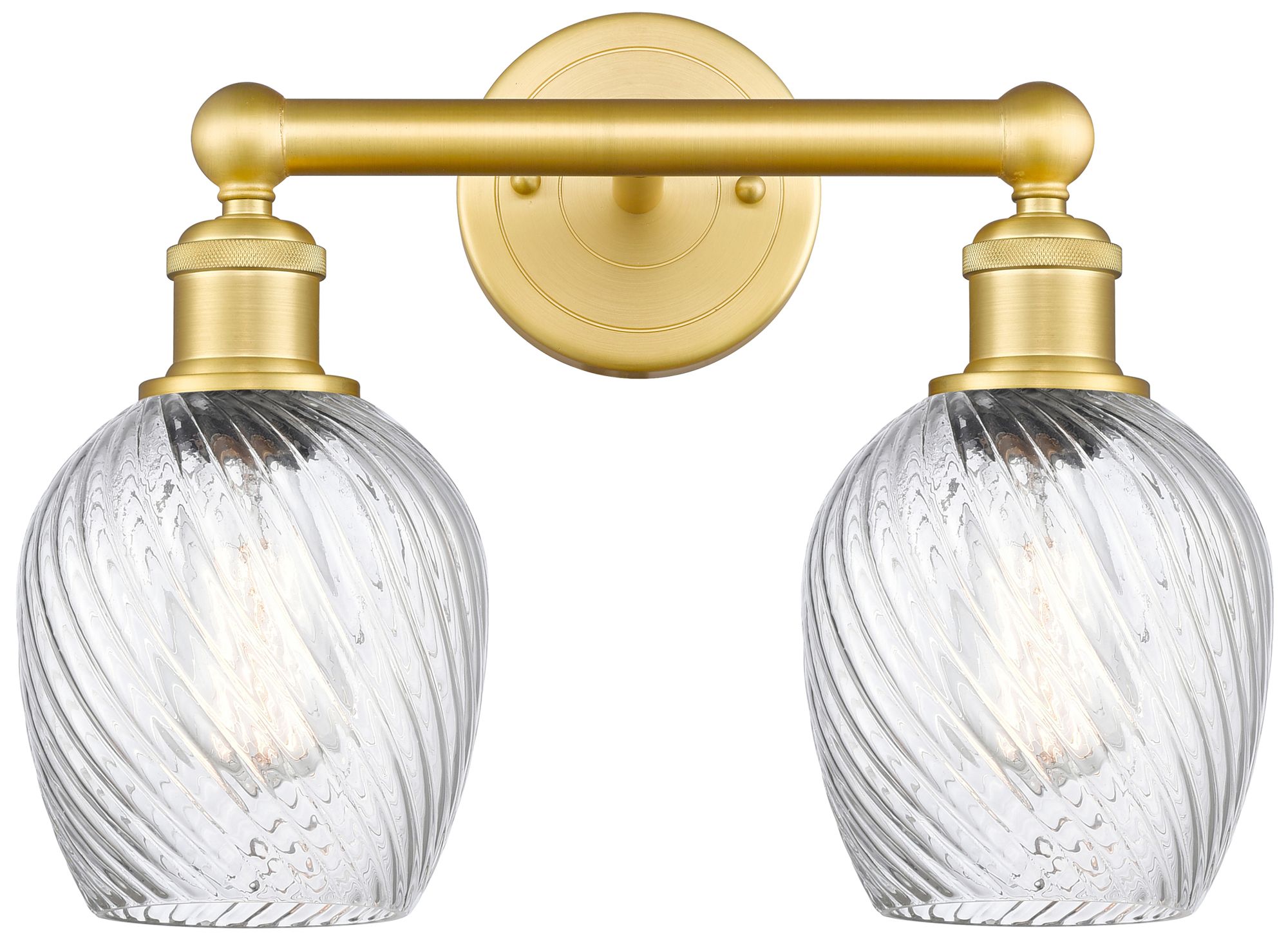 Salina 14"W 2 Light Satin Gold Bath Light With Clear Spiral Fluted Sha