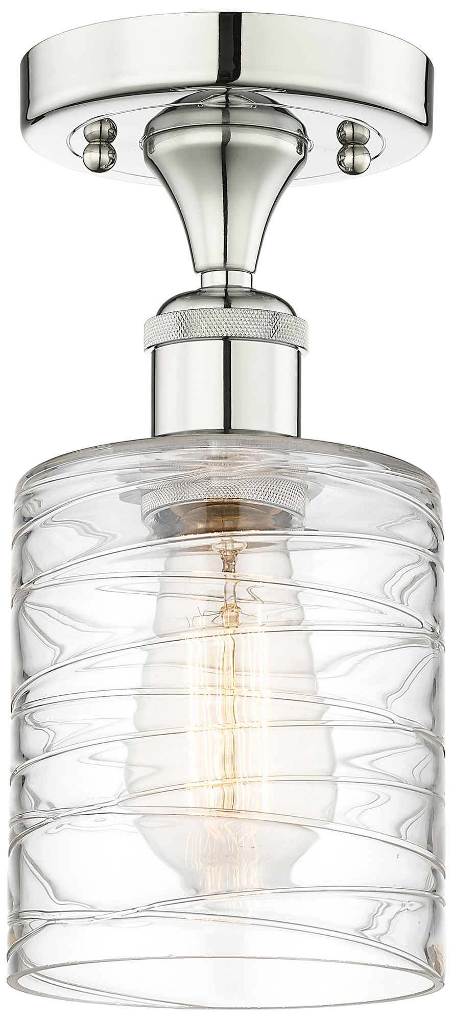 Cobbleskill 5"W Polished Nickel Semi.Flush Mount w/ Deco Swirl Glass S