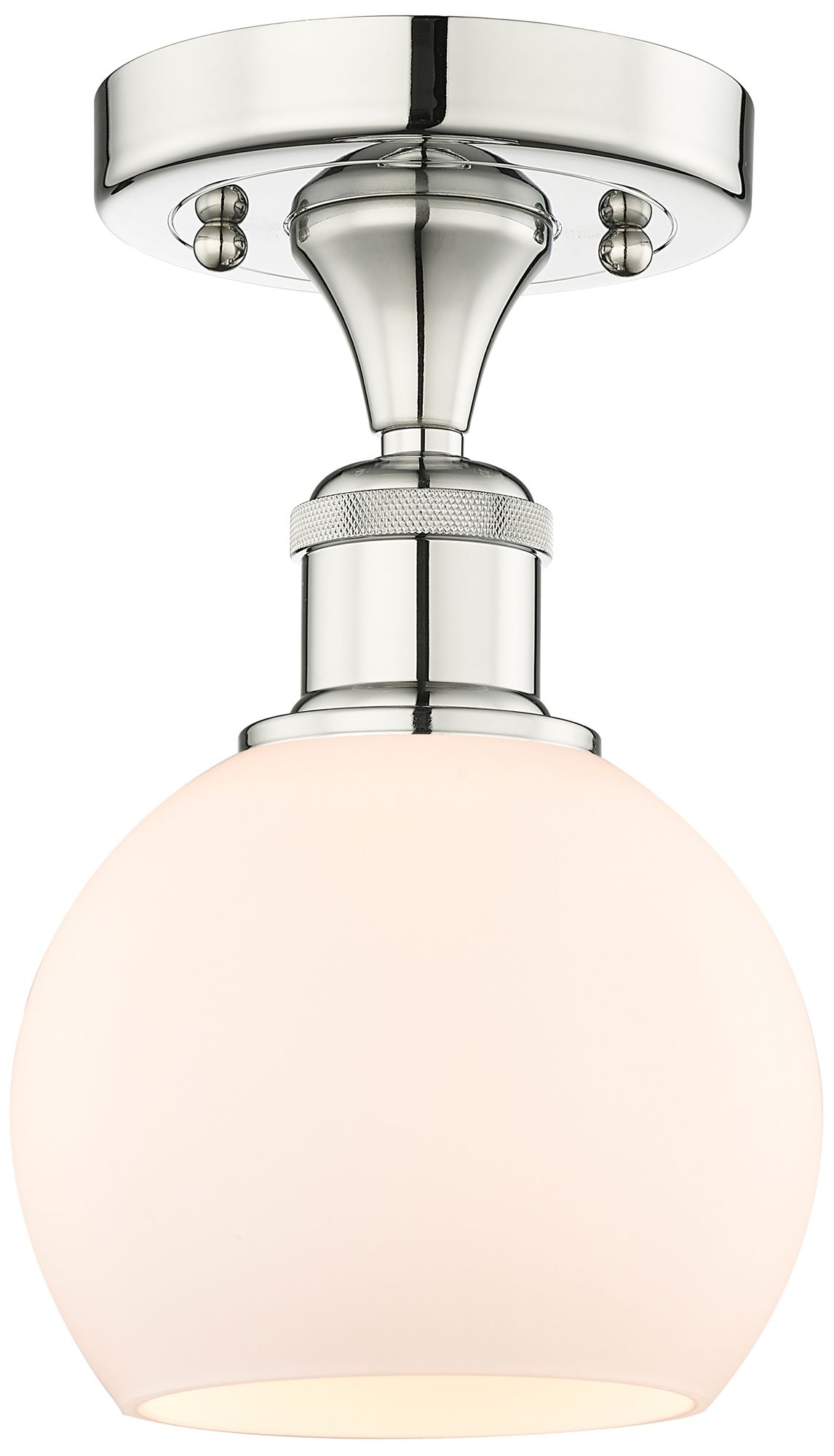 Athens 6" Wide Polished Nickel Semi.Flush Mount With Matte White Shade