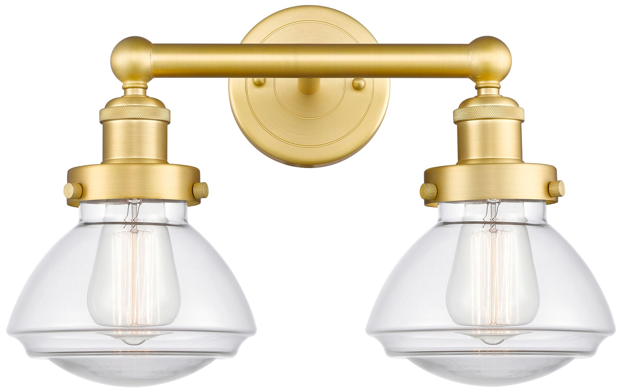 Olean 15.5" Wide 2 Light Satin Gold Bath Vanity Light With Clear Shade