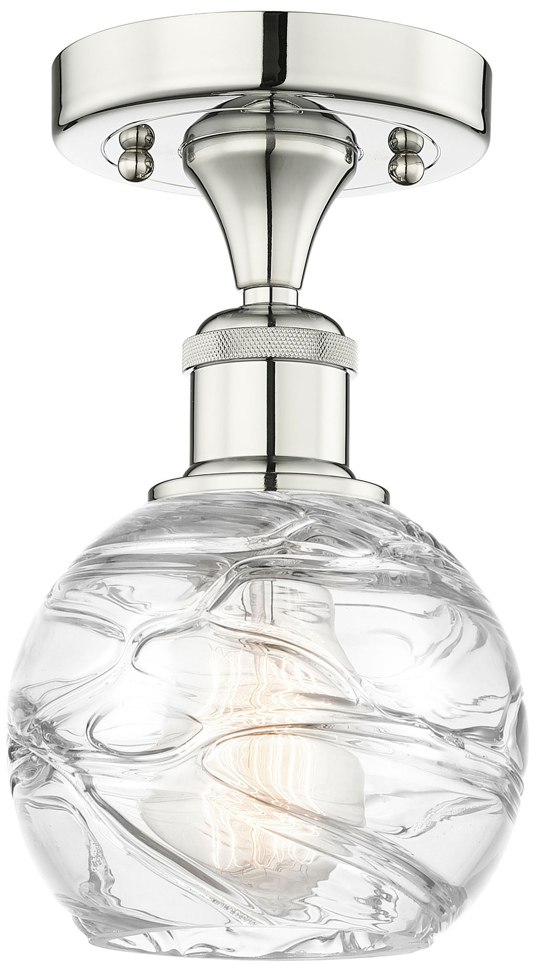 Athens 6" Wide Polished Nickel Semi.Flush Mount With Deco Swirl Glass