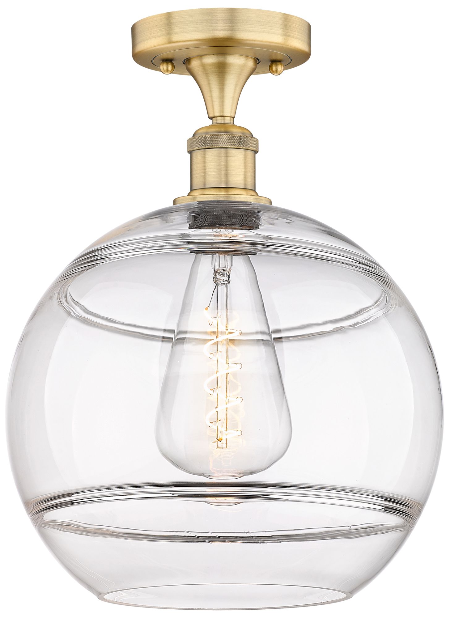 Edison Rochester 12" Wide Brushed Brass Semi-Flush Mount With Clear Sh