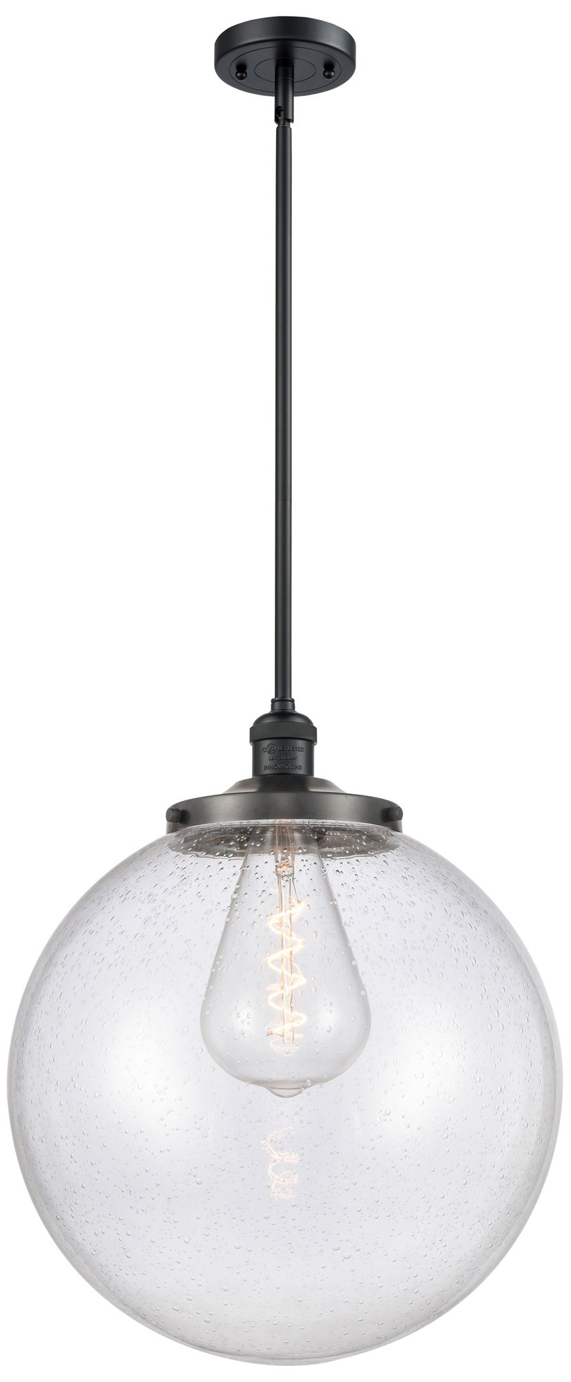 Franklin Beacon 16"W Matte Black Stemmed Pendant w/ Seedy Shade