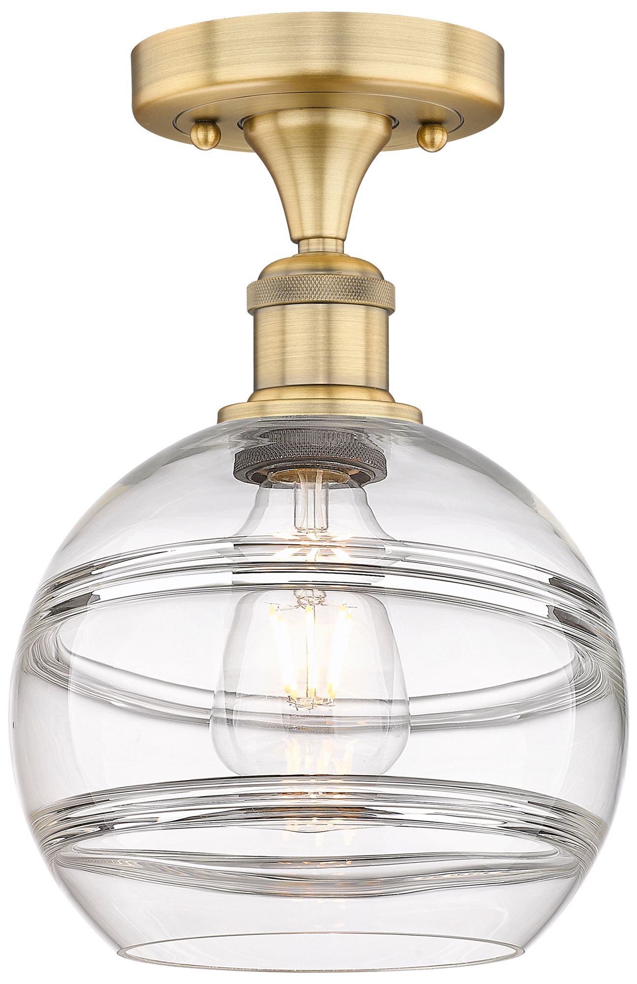 Edison Rochester 8" Wide Brushed Brass Semi-Flush Mount With Clear Sha