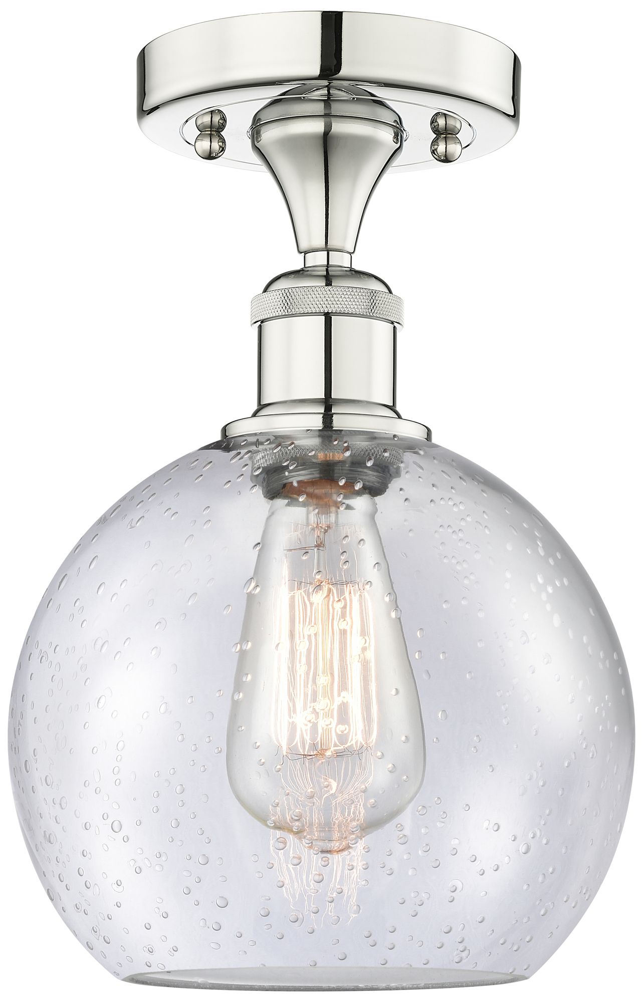 Athens 8" Wide Polished Nickel Semi.Flush Mount With Seedy Glass Shade